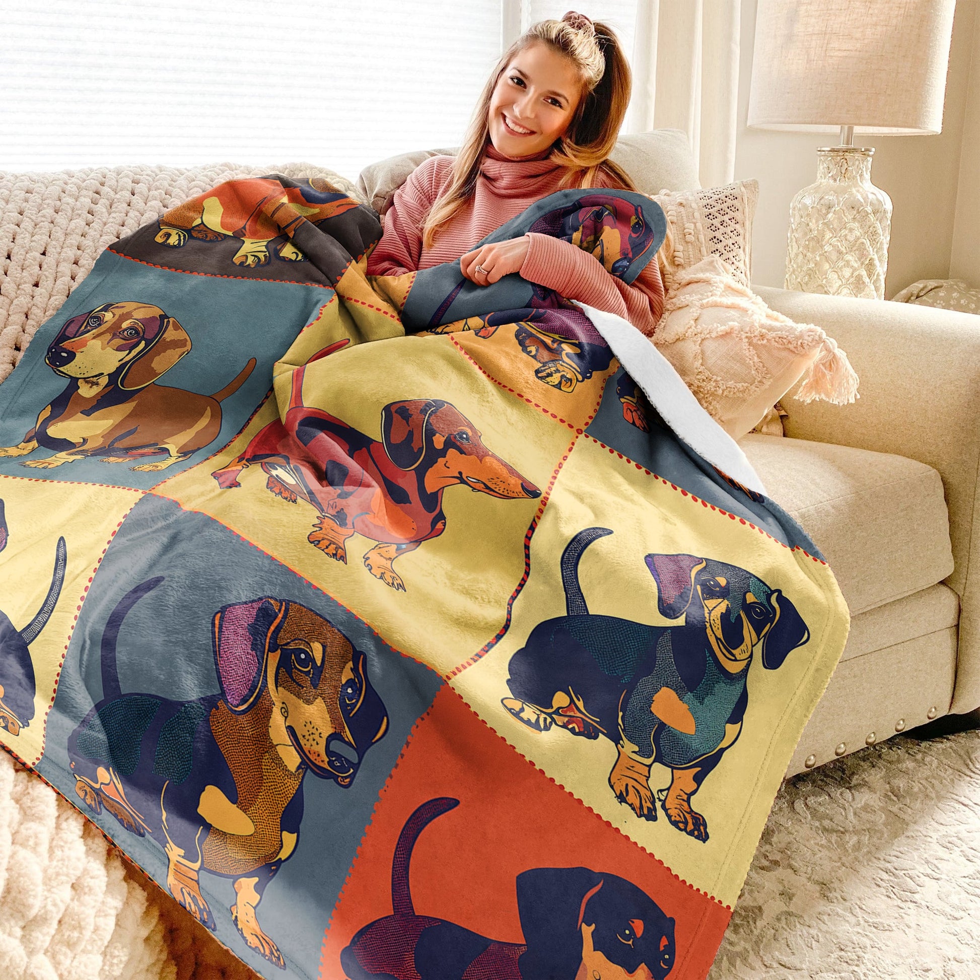 Shineful Fleece Blanket Dachshund Palette Patchwork