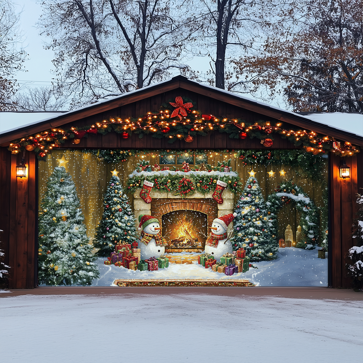 Shineful Garage Door Banner Decoration - Cozy Snowman by the Hearth