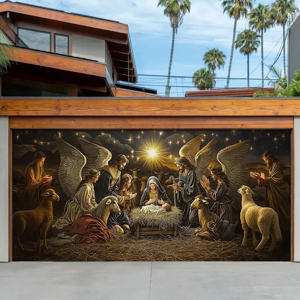Shineful Garage Door Banner Decoration Holy Nativity Angelic Adoration