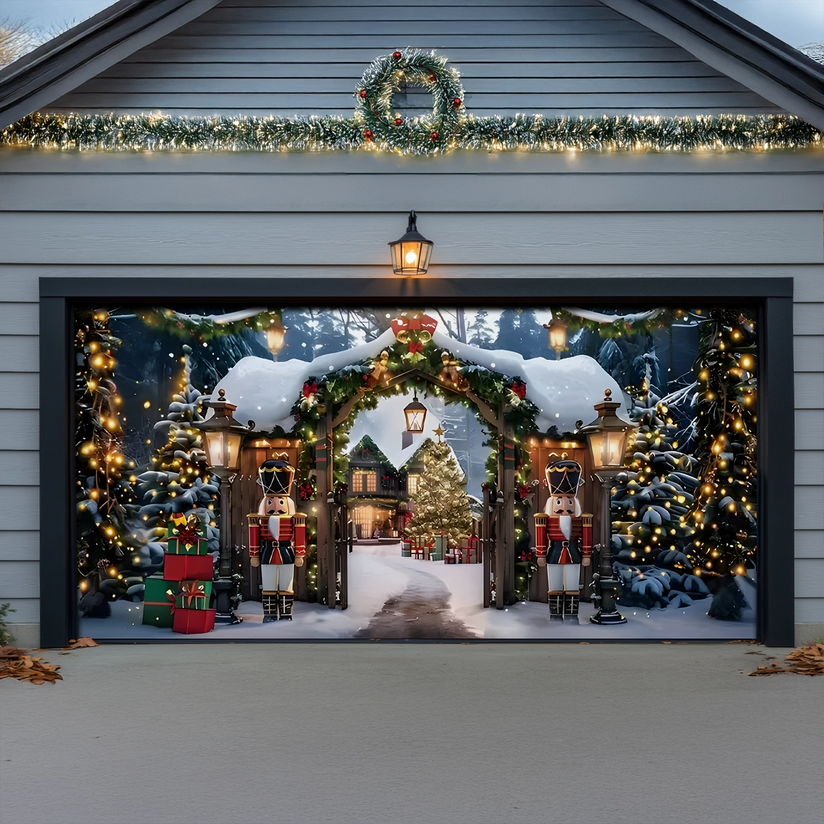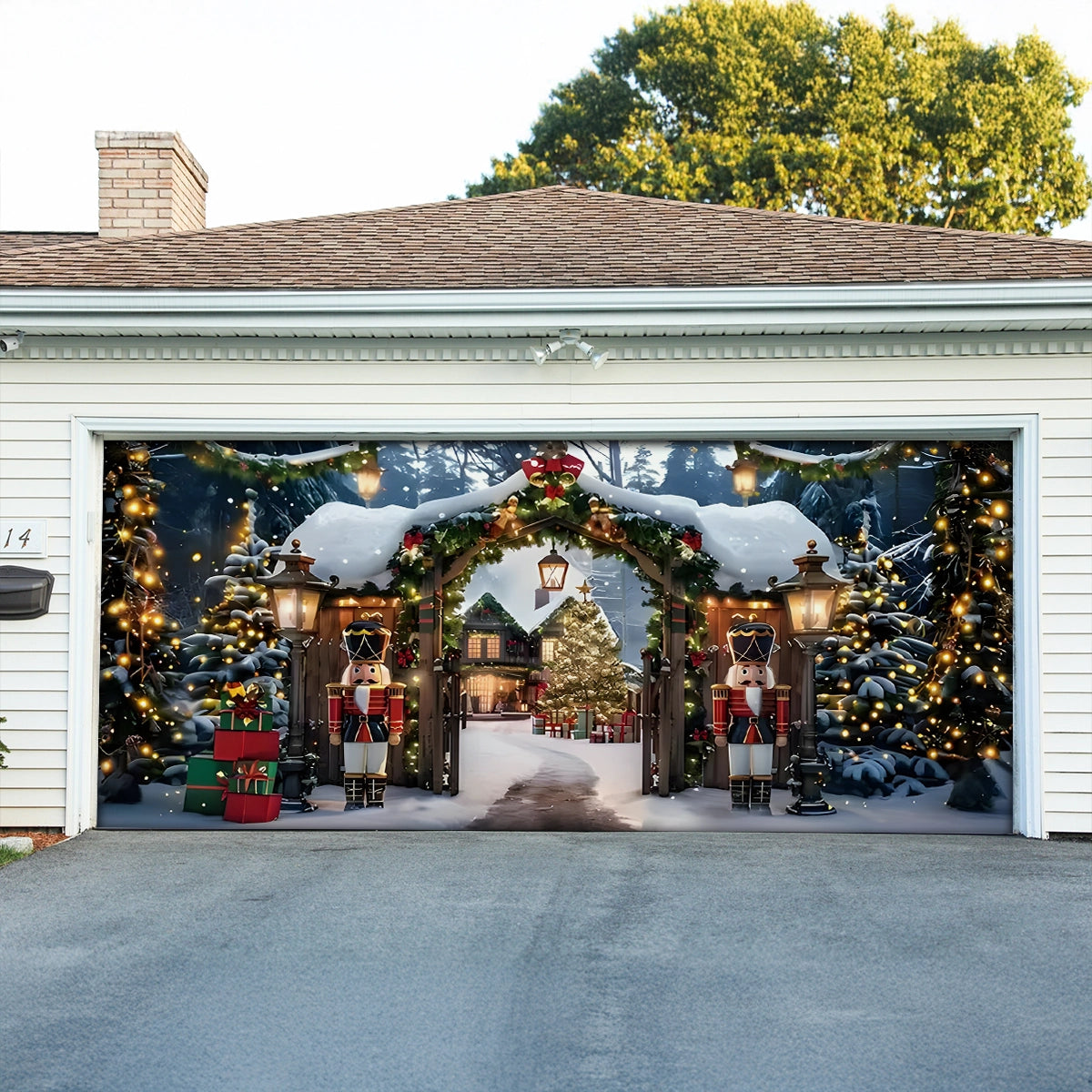 Shineful Garage Door Banner Decoration Snowy Nutcracker Celebration