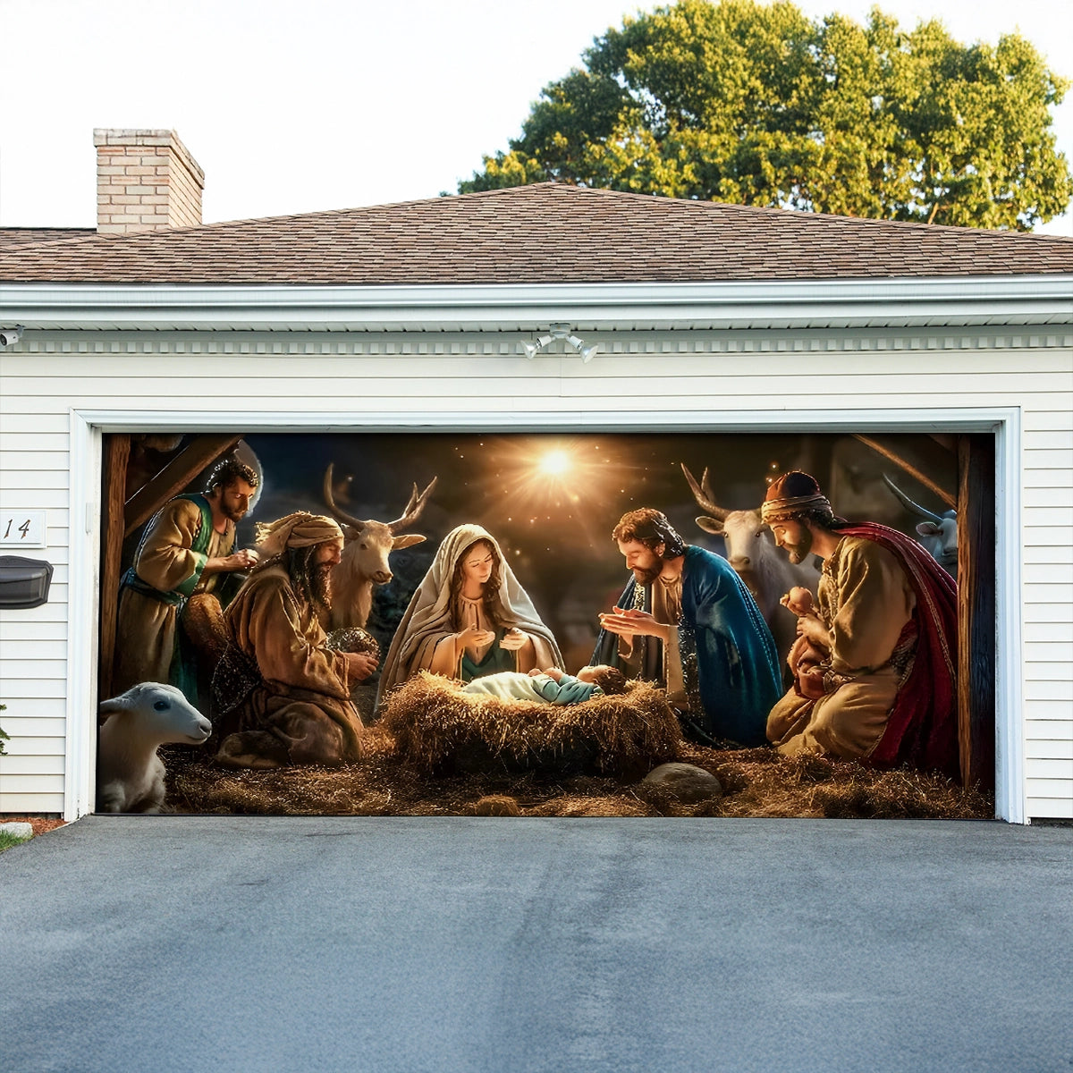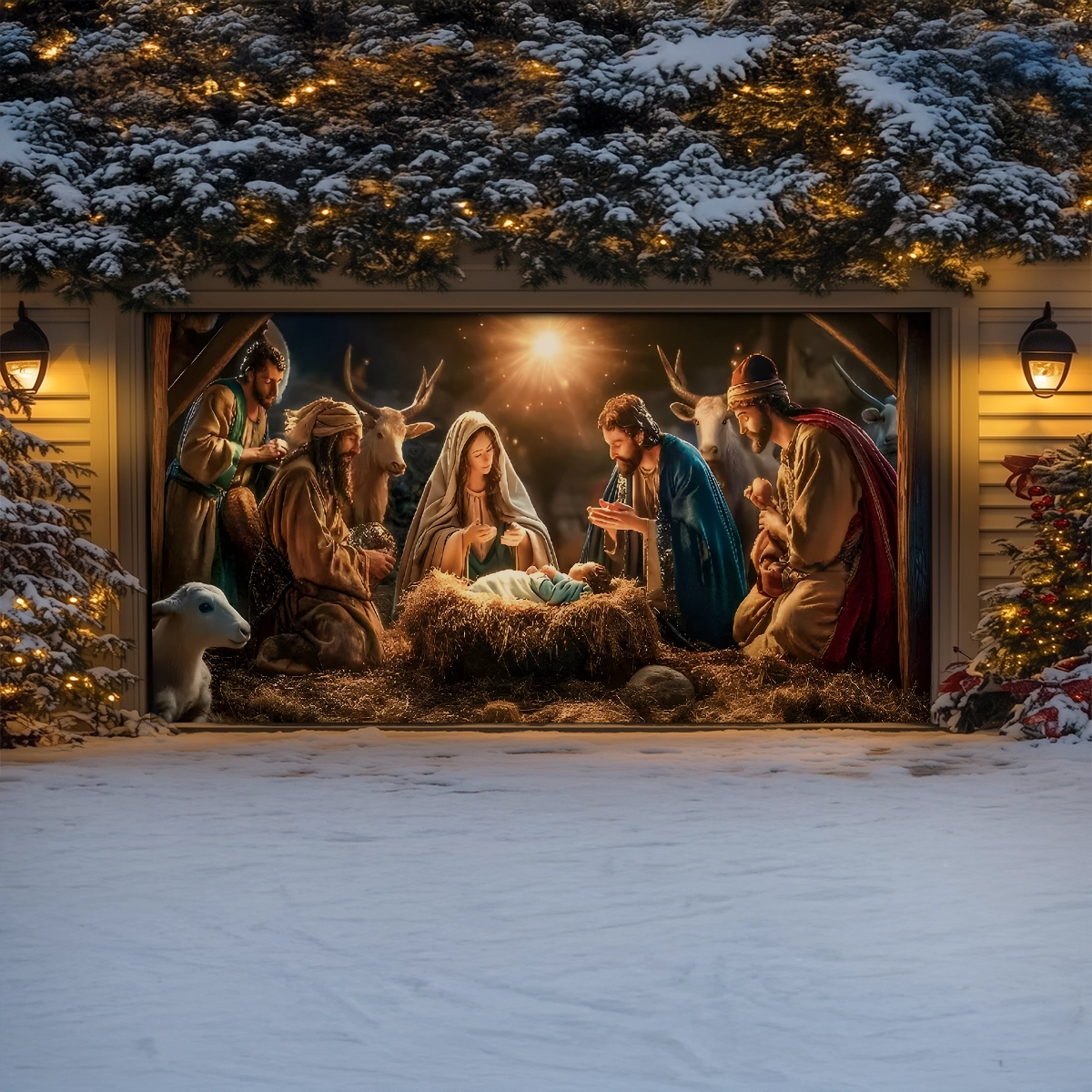 Shineful Garage Door Banner Decoration The Holy Family's Sacred Night