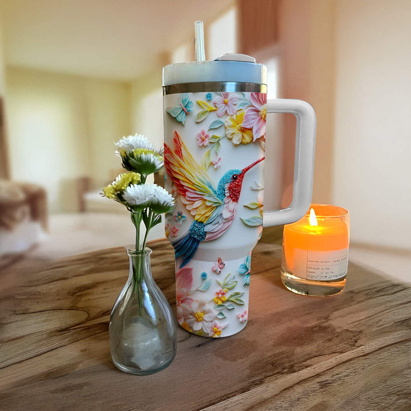 Shineful Glossy Tumbler Gorgeous Floral Hummingbird