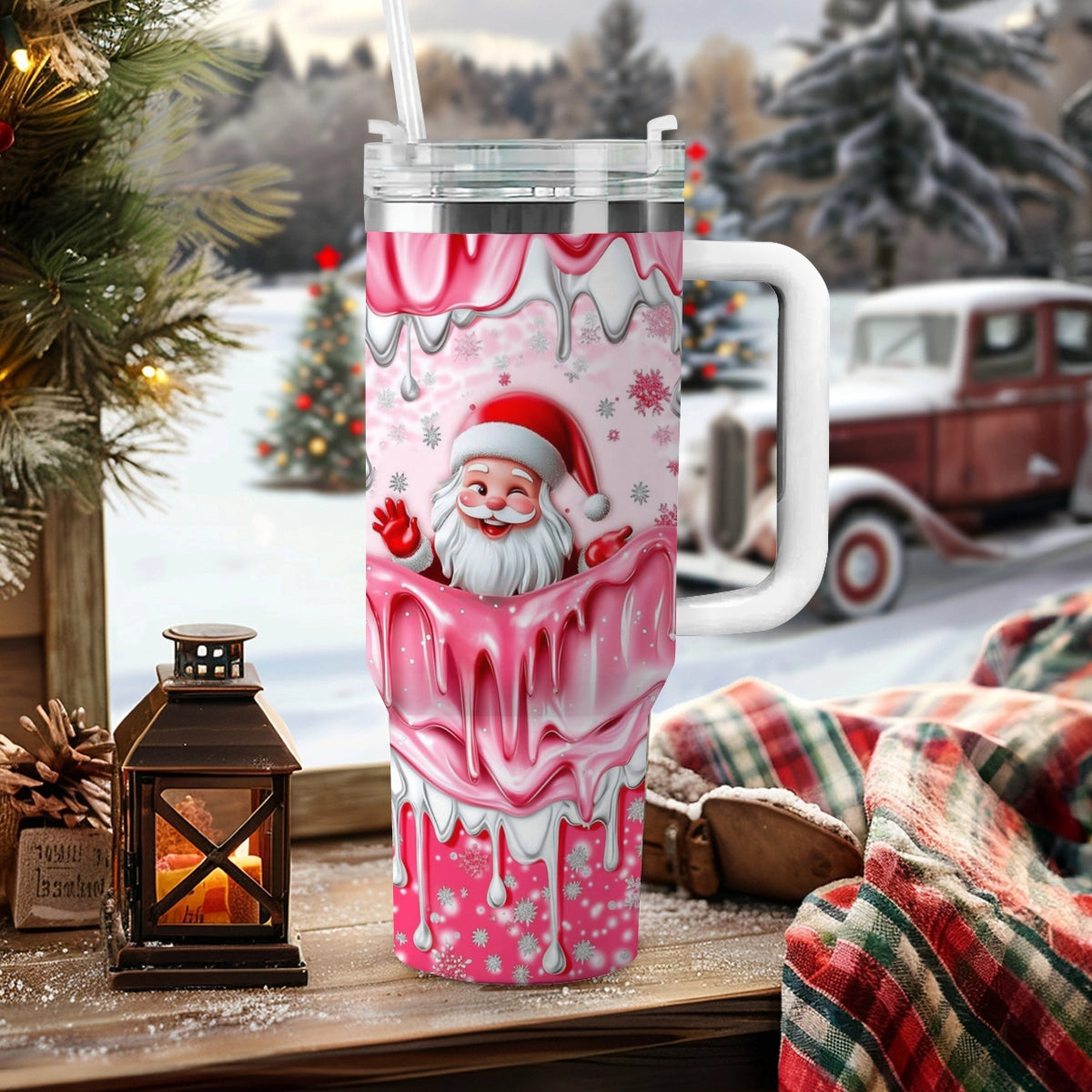 Shineful Glossy Tumbler Santa  Pink Holiday Cheer