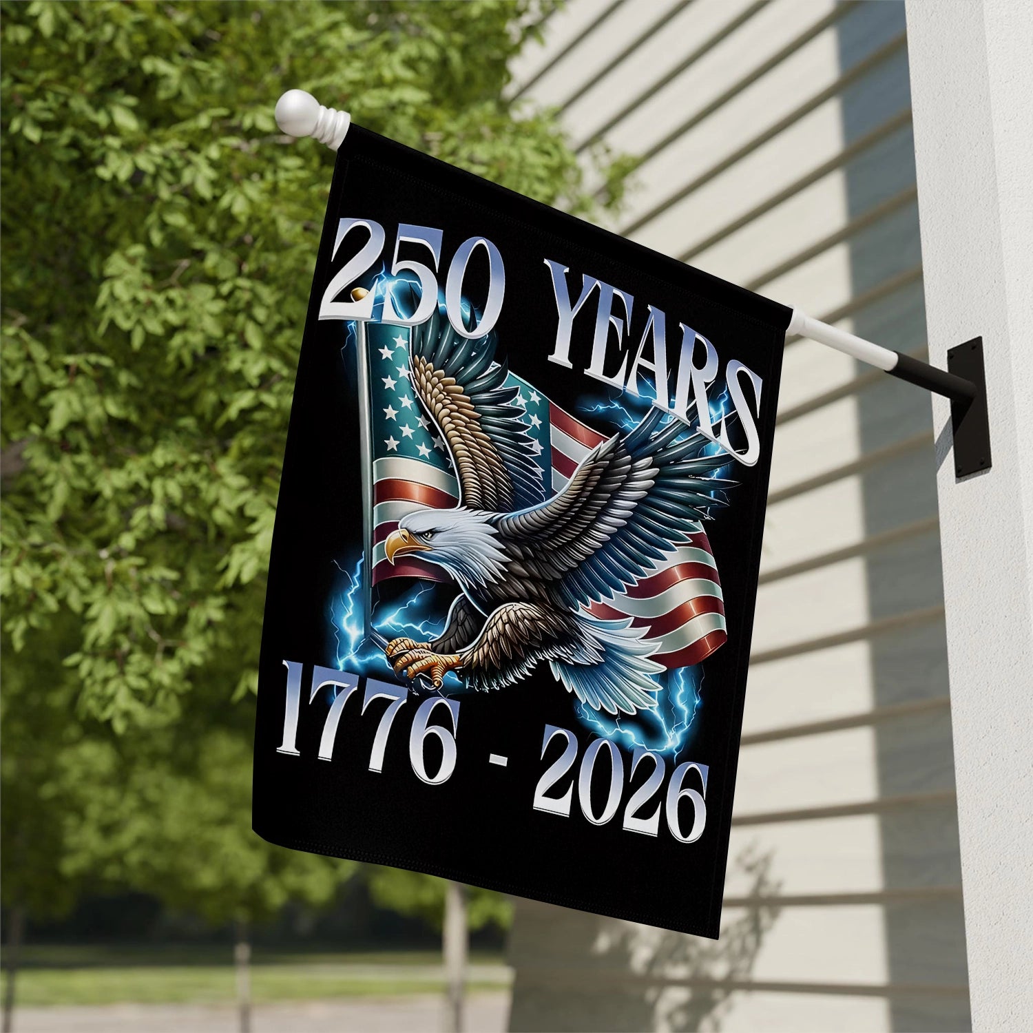 Honor 250 years of American courage, heritage, and freedom with this powerful commemorative flag. Designed to celebrate the enduring spirit of the United States, this piece is more than decoration — it’s a tribute to generations who built, served, and protected the nation. Whether displayed for Memorial Day, Independence celebrations, or year-round pride, this flag brings a bold statement of patriotism to any home.