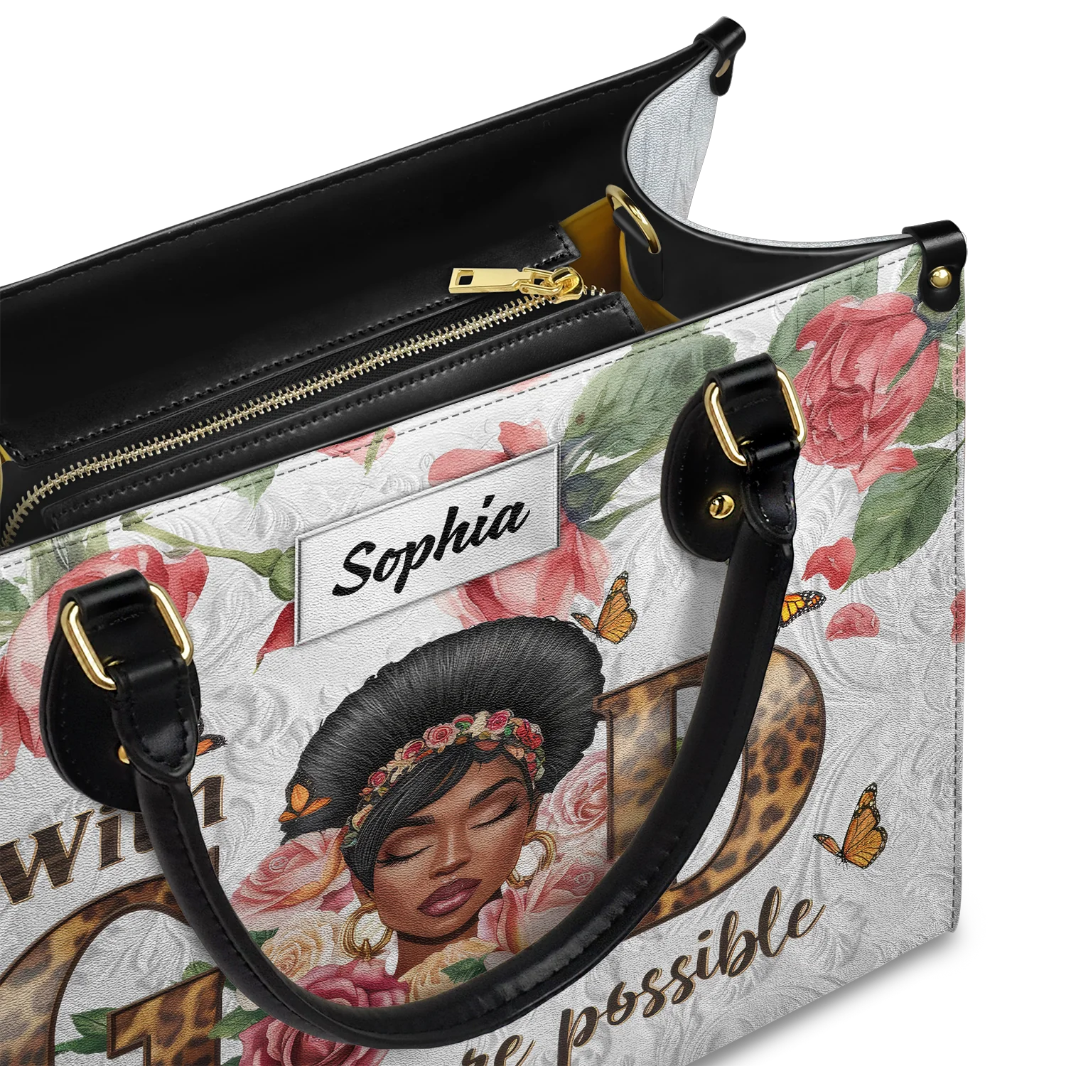 Shineful Leather Bag Personalized Wings of Bloom