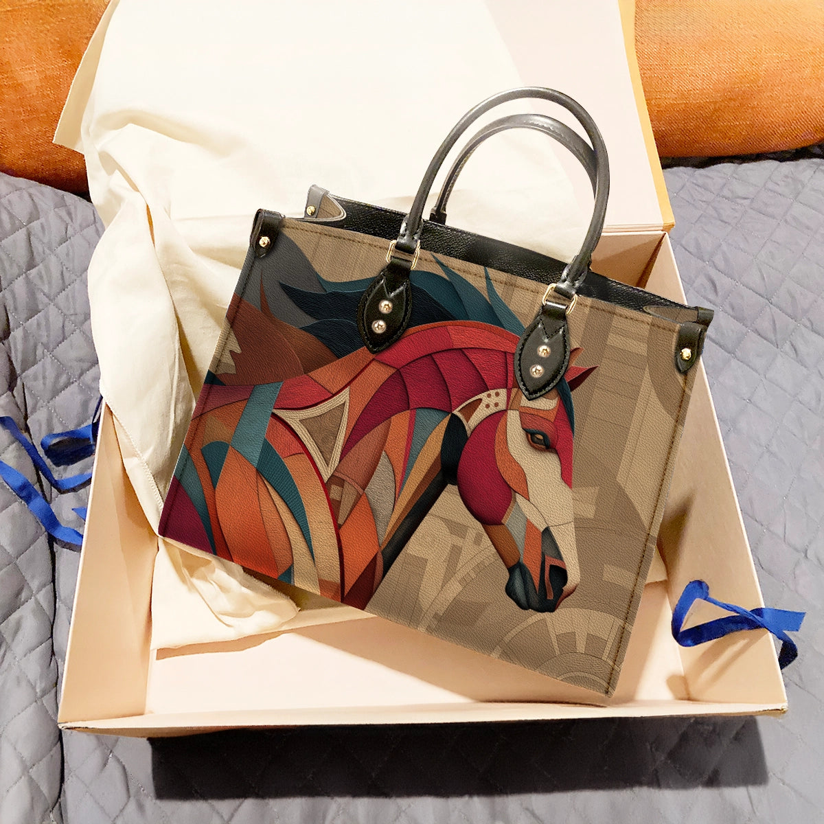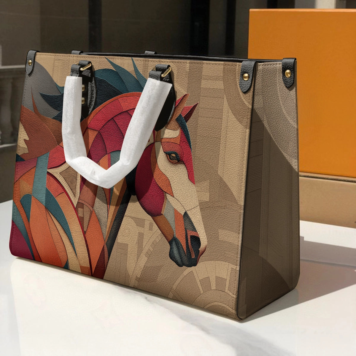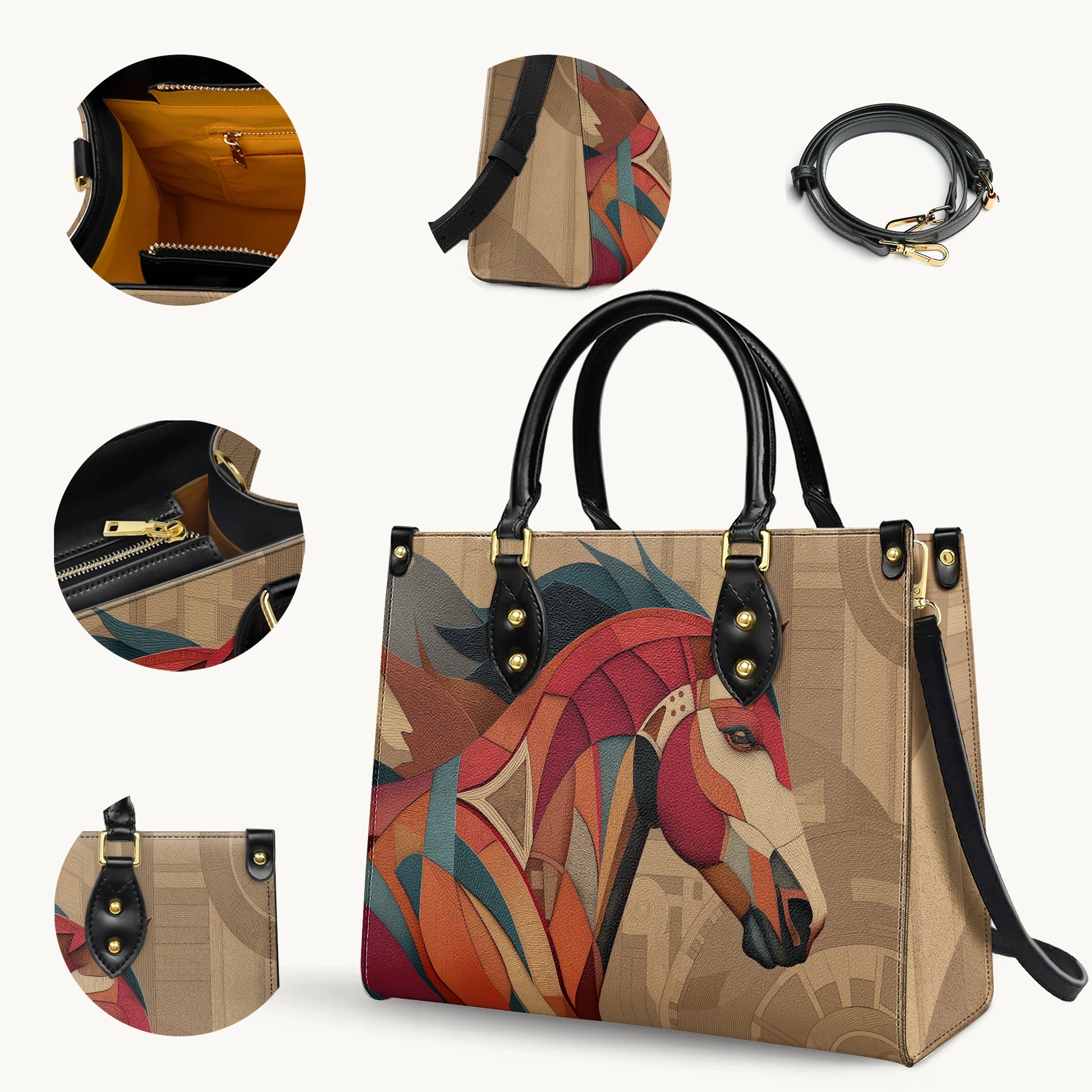 This premium leather carry piece showcases a striking geometric horse artwork—bold, graceful, and full of character. Designed with layered textures and rich earthy tones, the horse portrait blends modern abstract art with timeless symbolism of strength, freedom, and elegance.