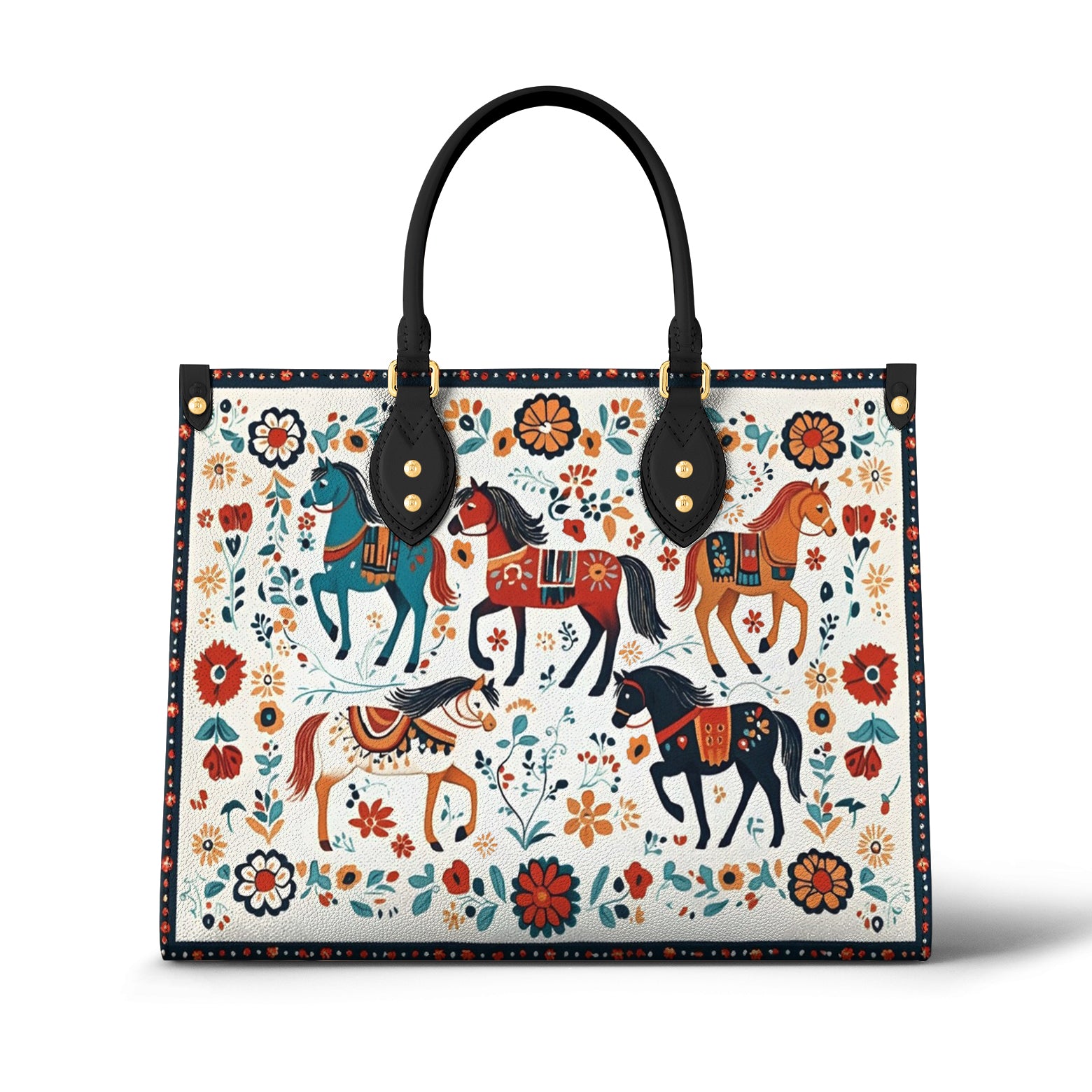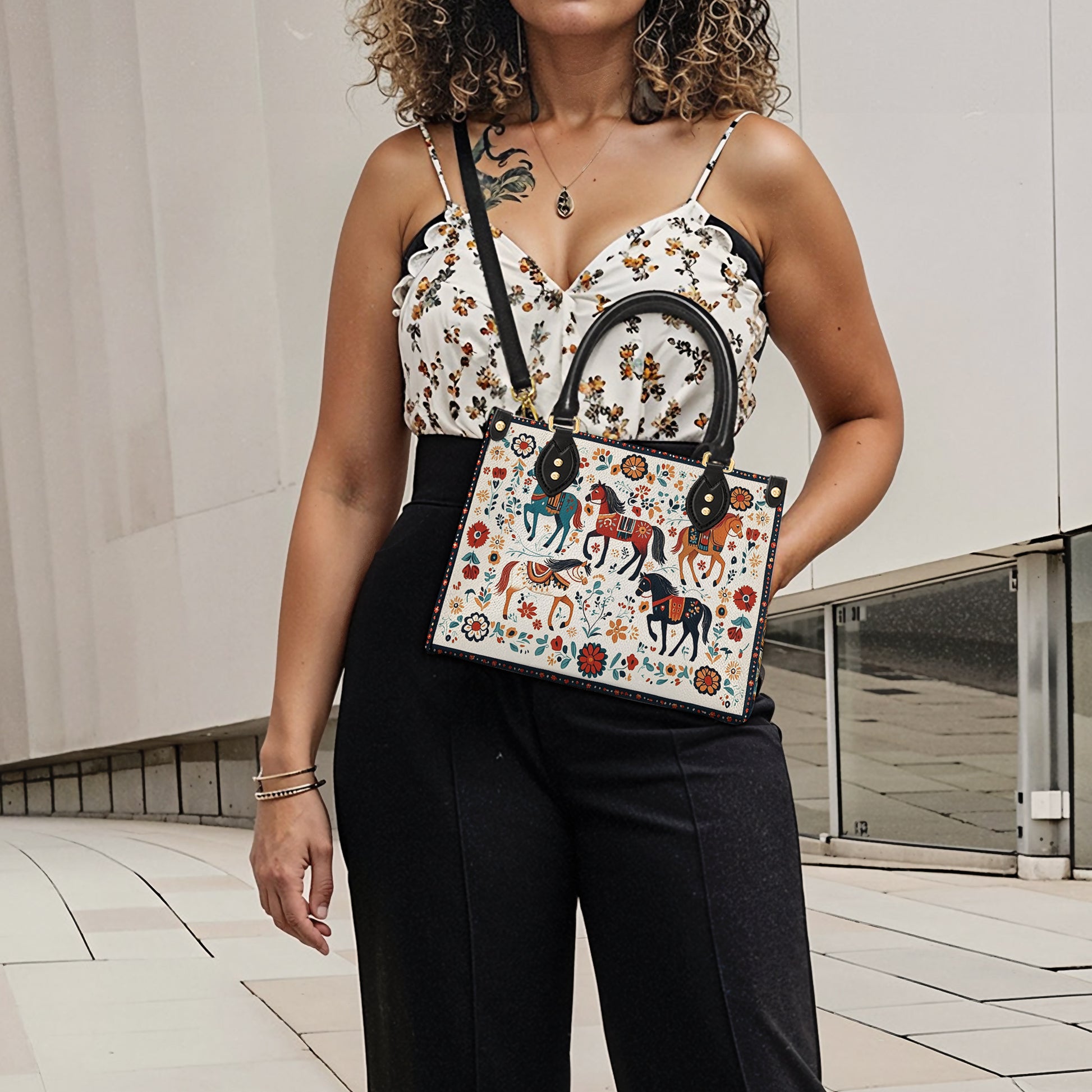 Shineful Leather Bag Floral Horses