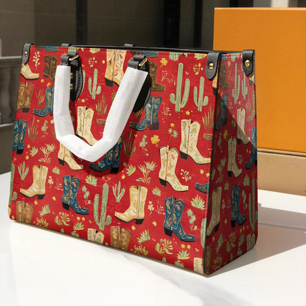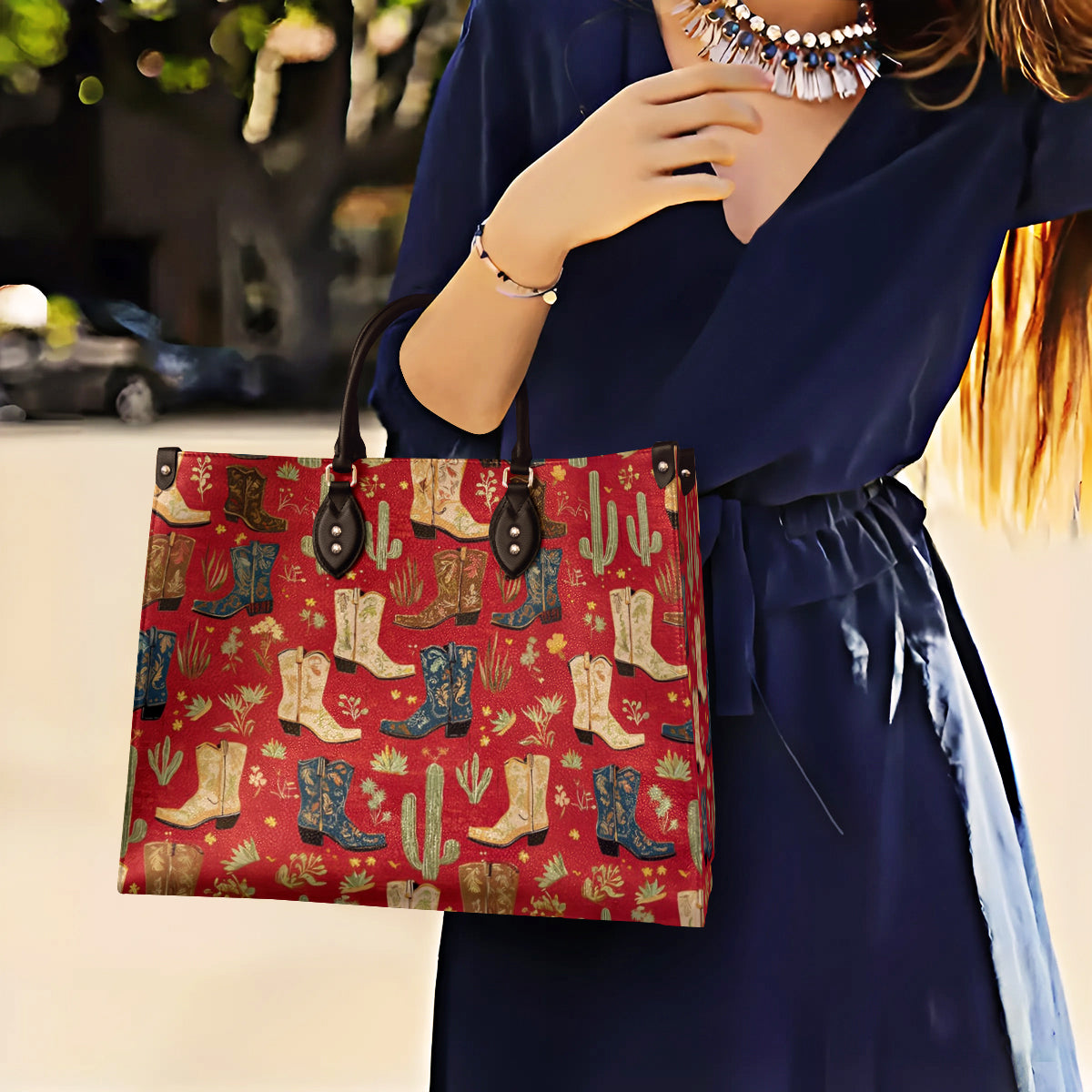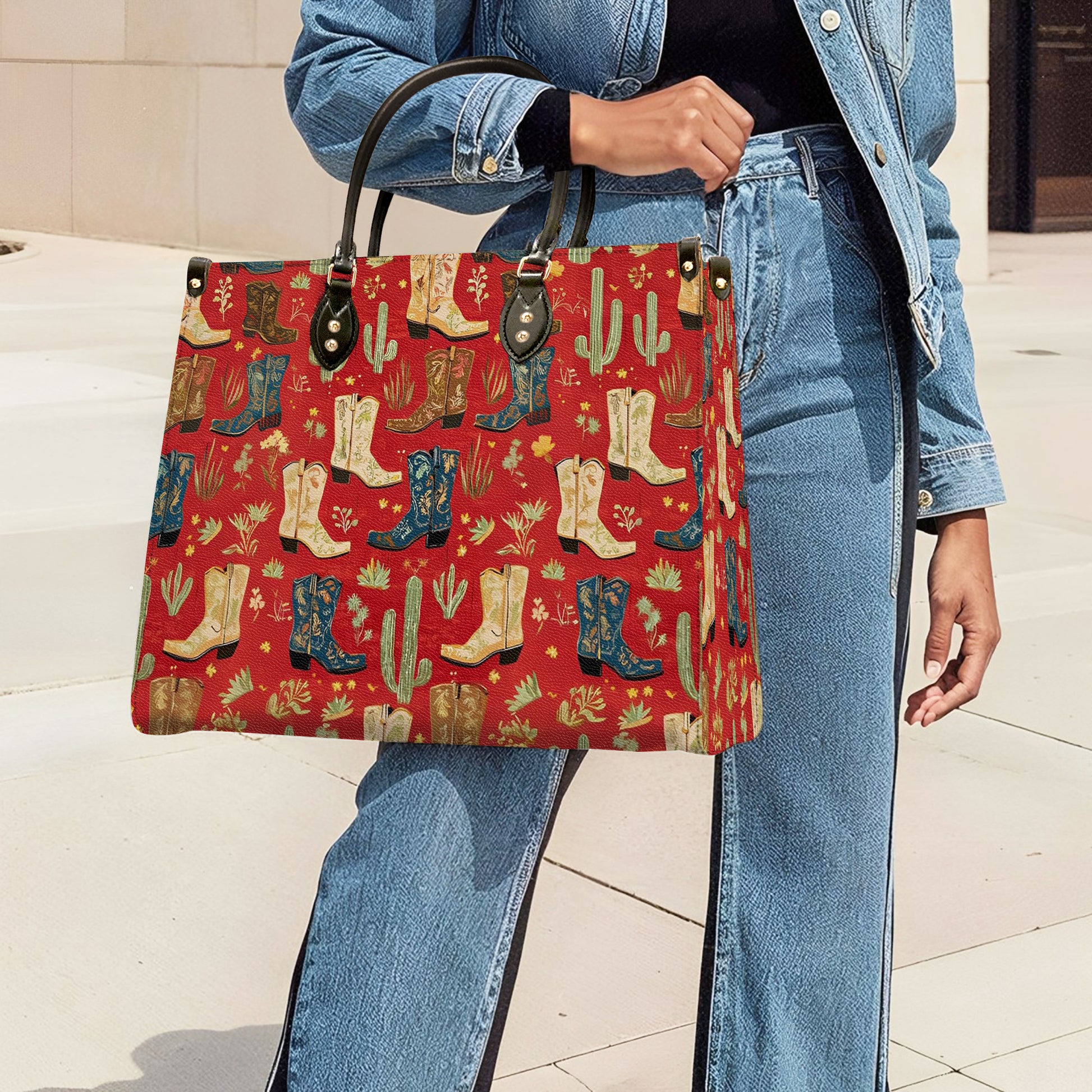 Shineful Leather Bag Glamorous Cowgirl Boot Pattern