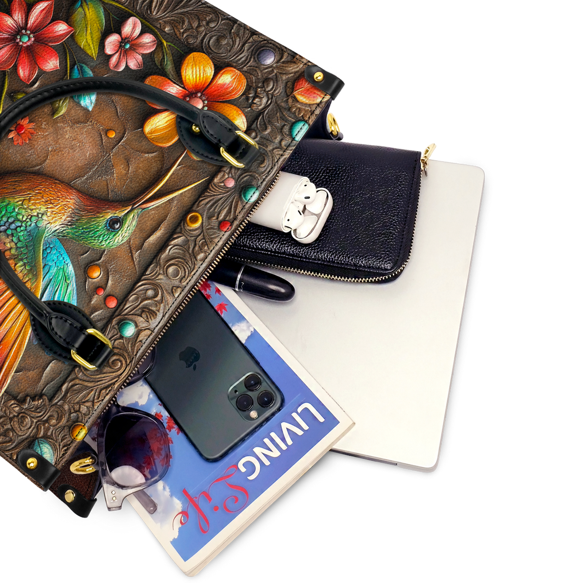 Shineful Leather Bag Hummingbird And Flower