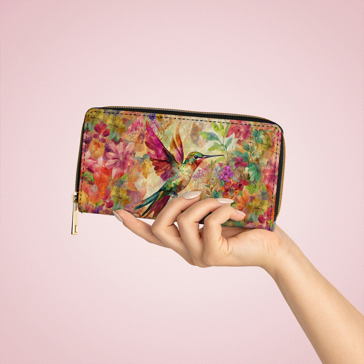 Shineful Leather Clutch Purse With Wristlet Strap Handle Hummingbird Bliss