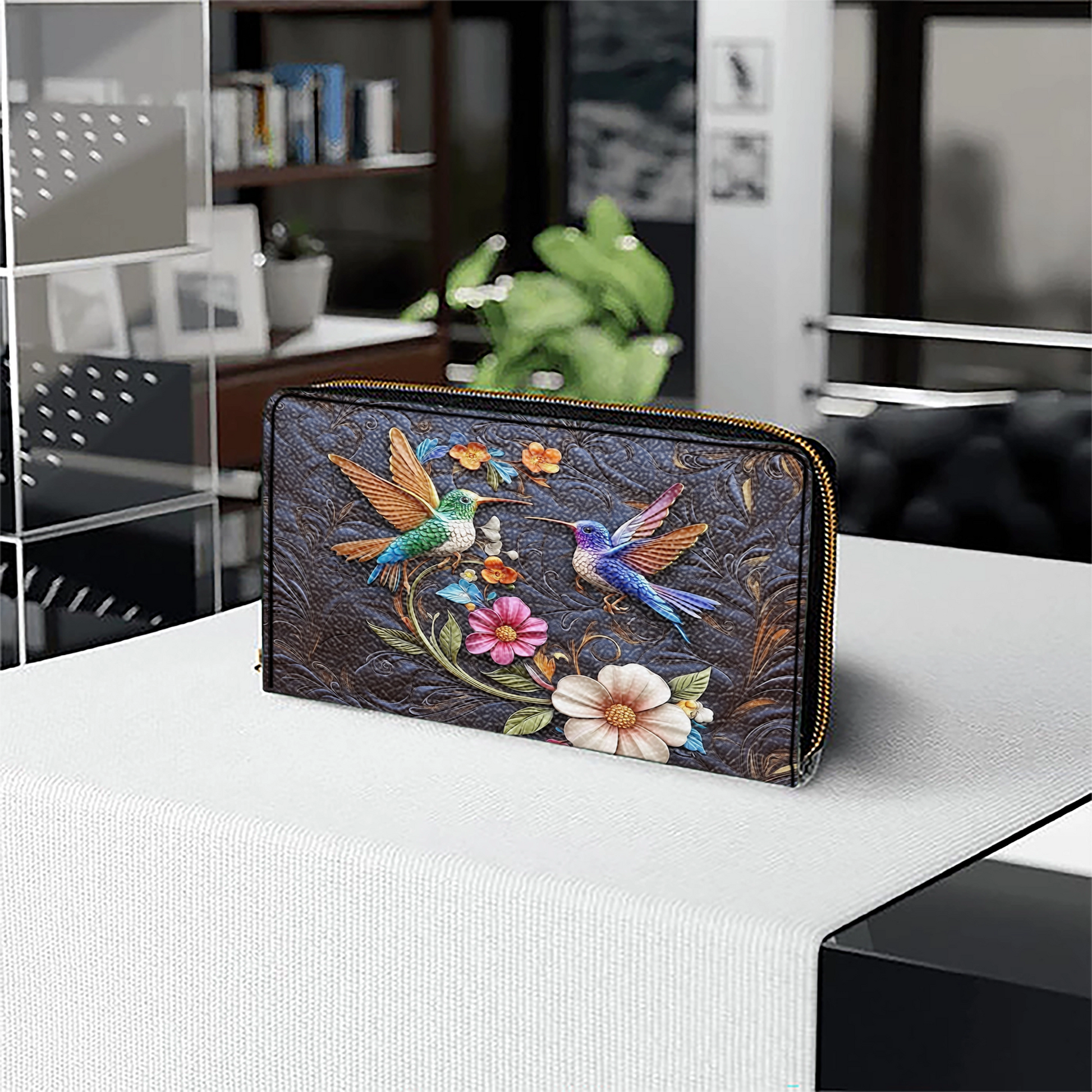 Shineful Leather Clutch Purse With Wristlet Strap Handle Hummingbird Dream