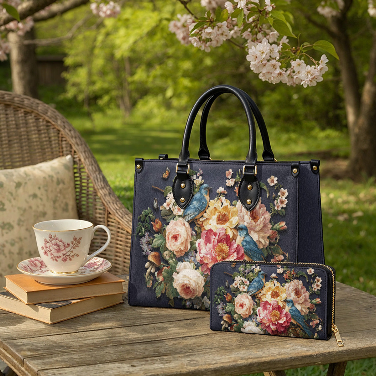 Shineful Leather Clutch Purse With Wristlet Strap Handle Midnight Bluebird Garden