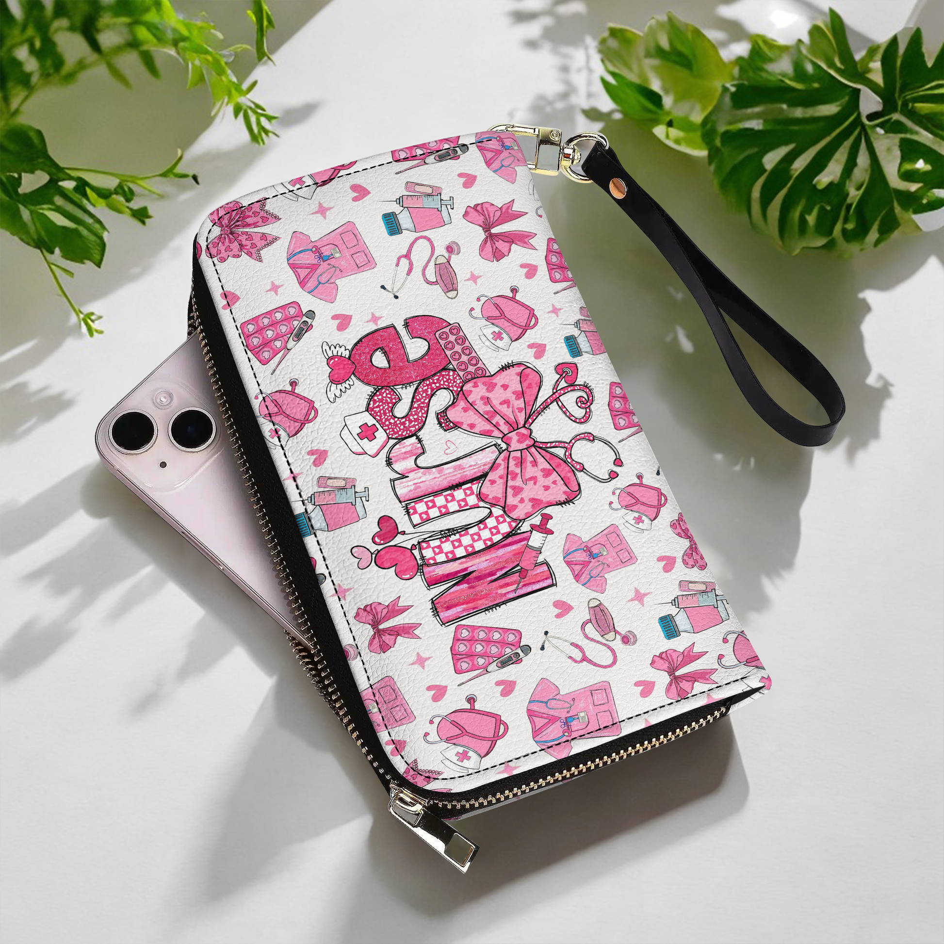 Shineful Leather Clutch Purse With Wristlet Strap Handle Nurse Valentine