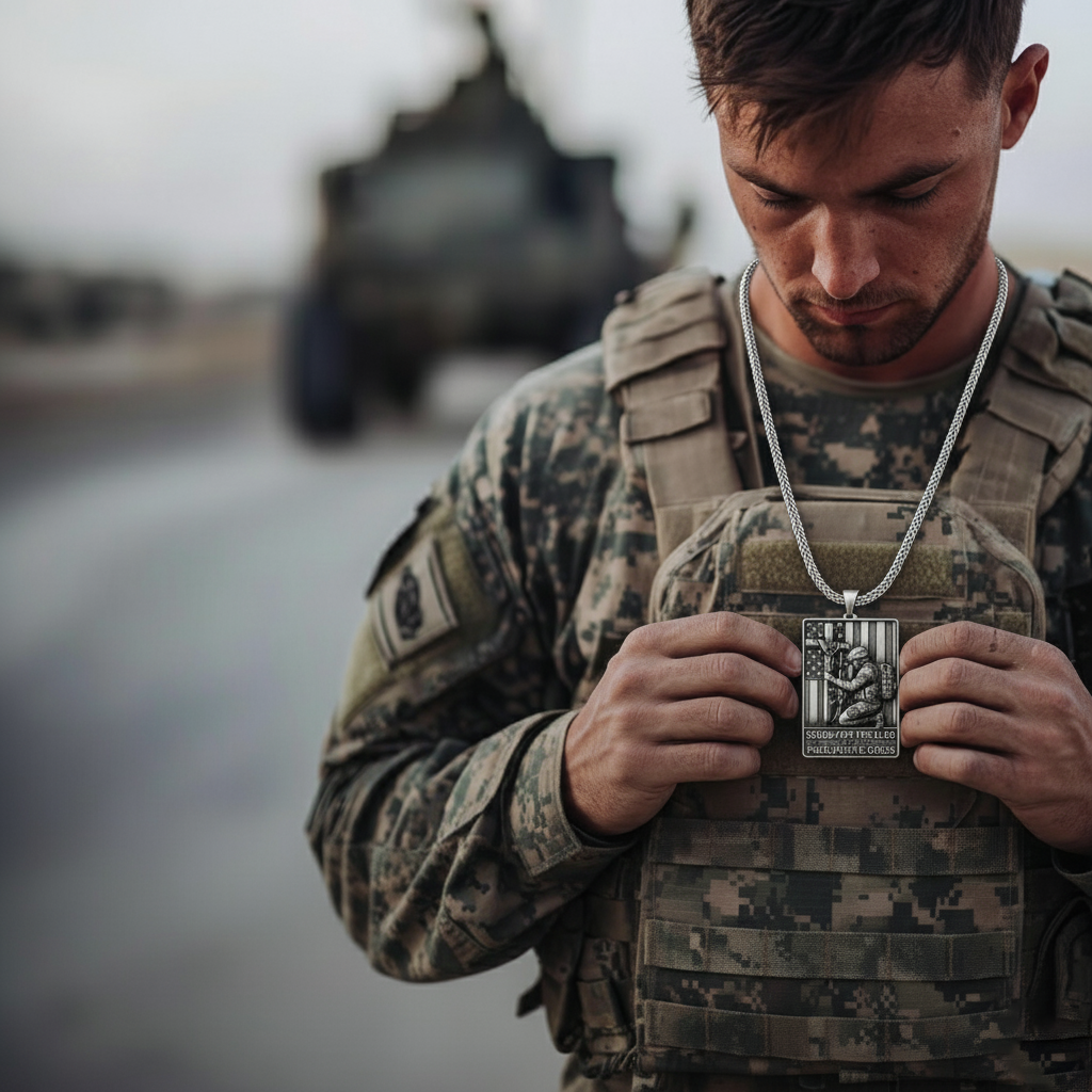 This pendant is more than jewelry — it is a tribute to every veteran who stood in uniform, carried the weight of sacrifice, and never let go of faith.