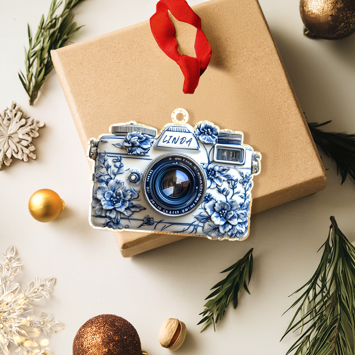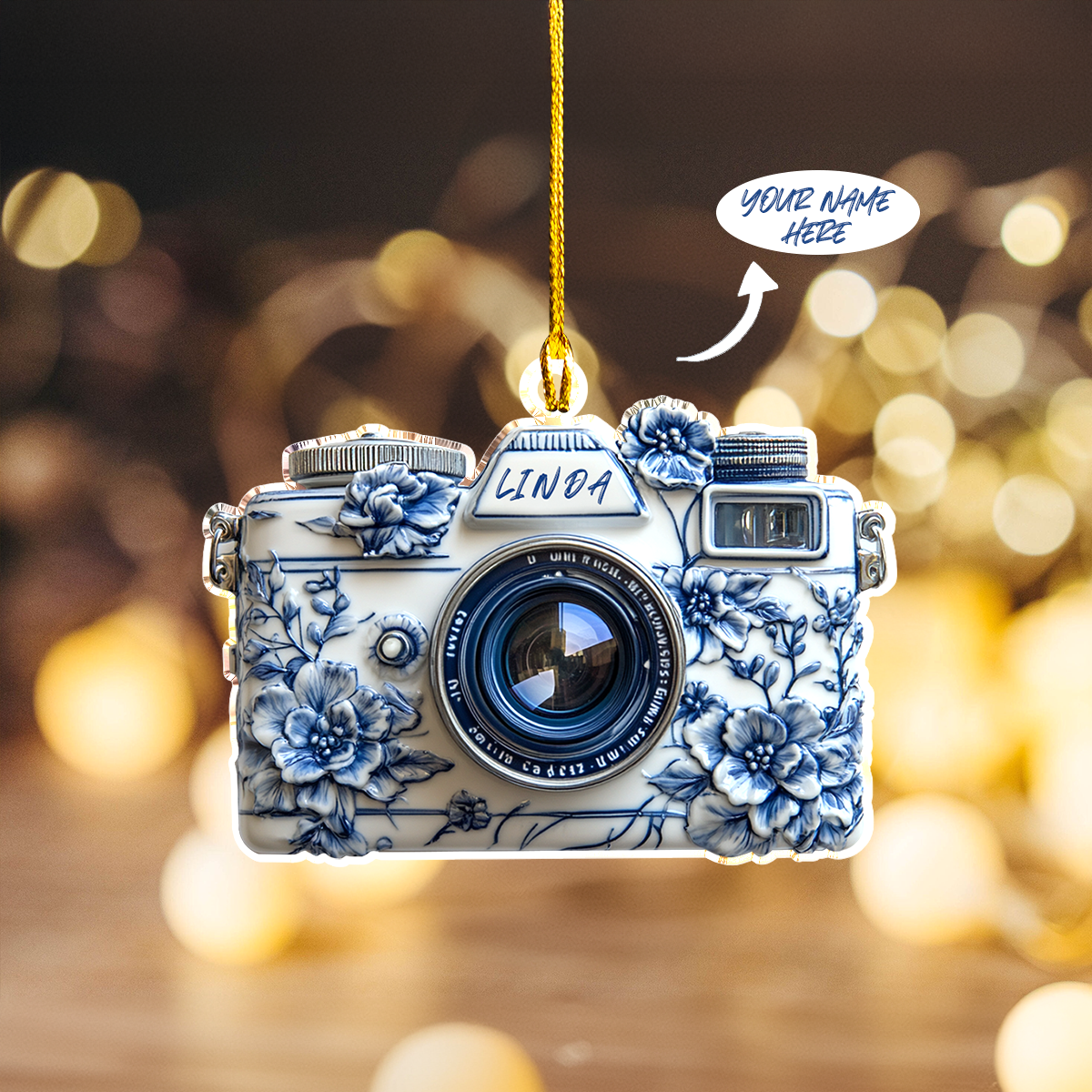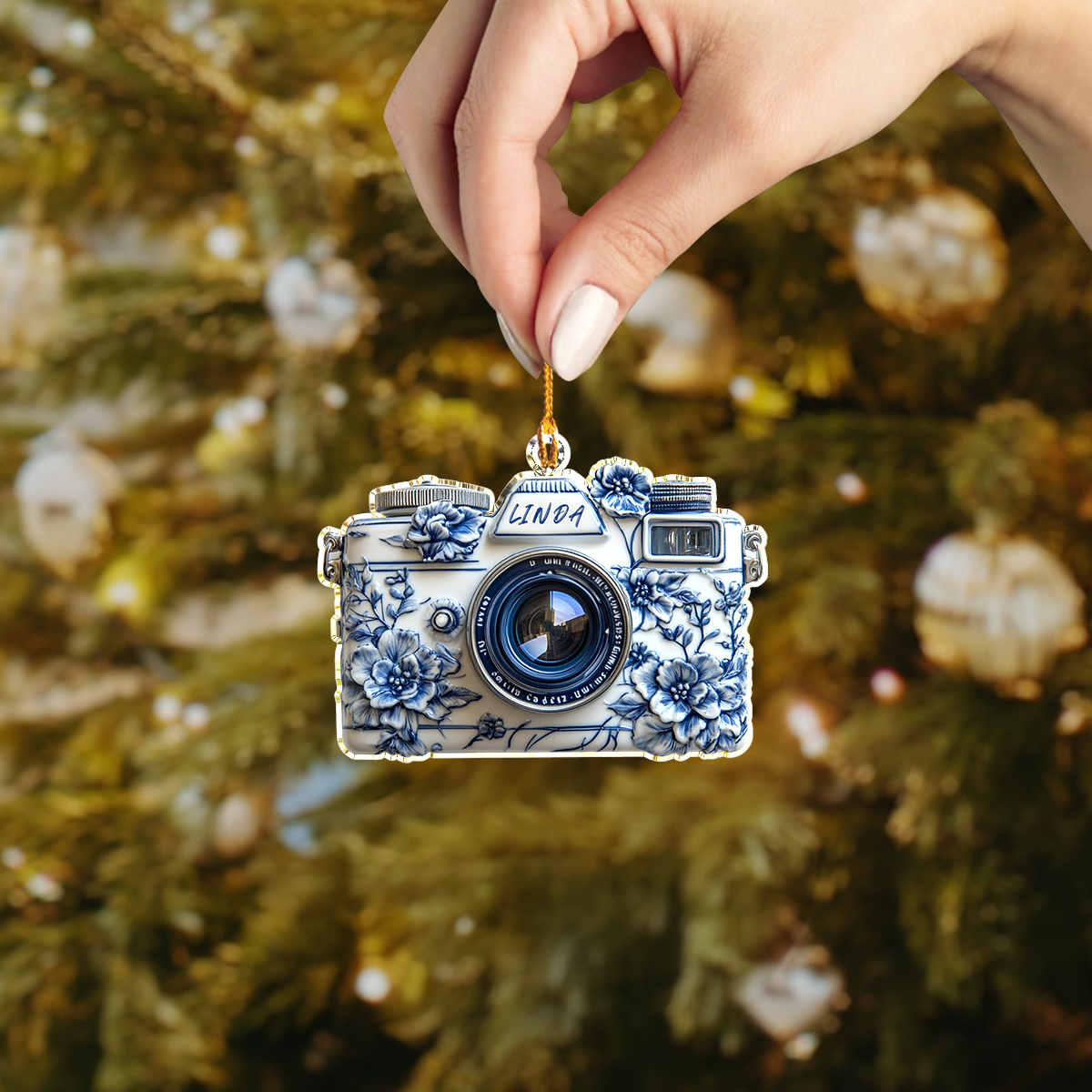 Shineful Personalized 2D Acrylic Ornament Elegant Blue Floral Camera