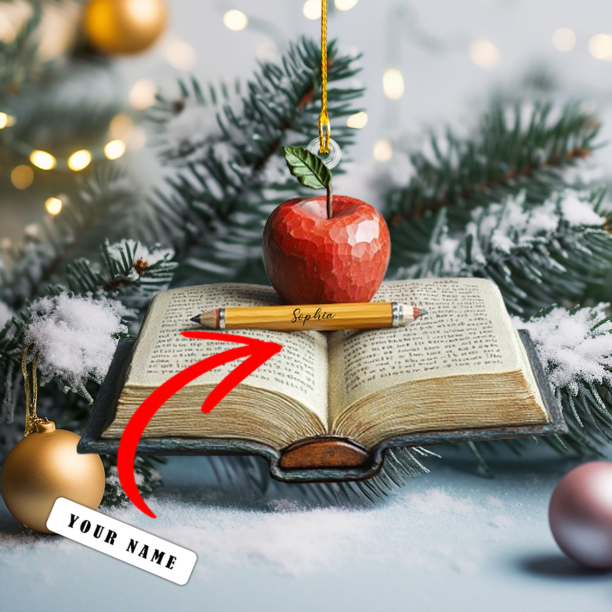 Shineful Personalized 2D Acrylic Ornament - Teacher's Apple & Book