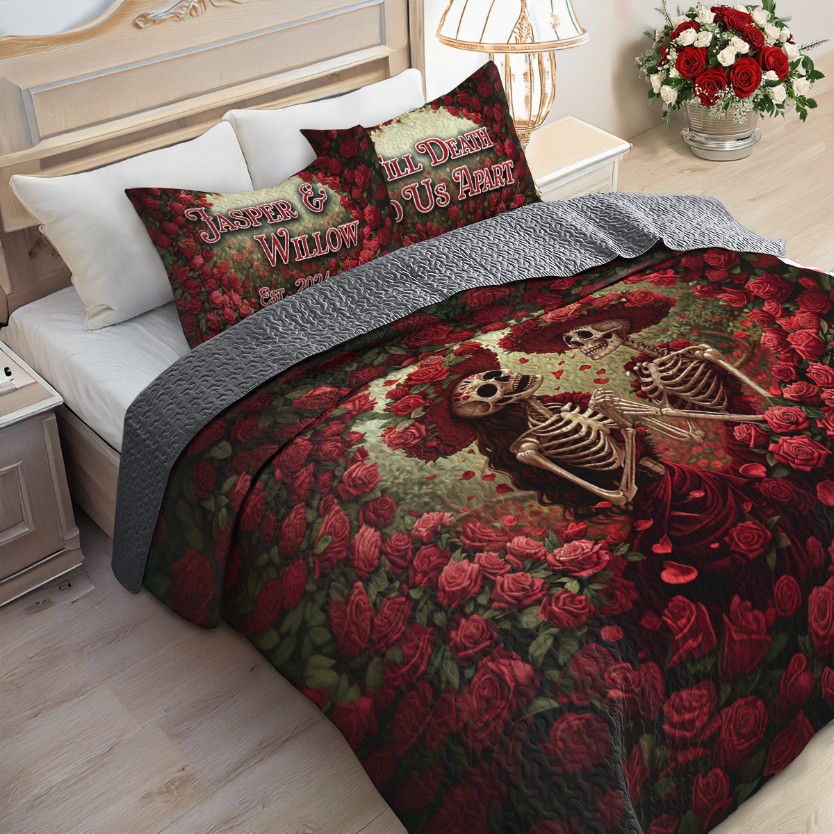 Shineful Personalized All Season Quilt 3-Piece Set Forever Yours Skull Love