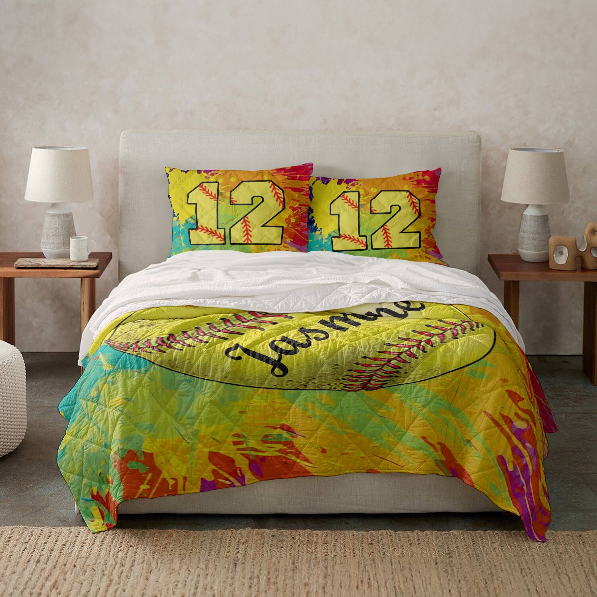 Shineful Personalized Colorful Softball - All Season Quilt 3-Piece Set