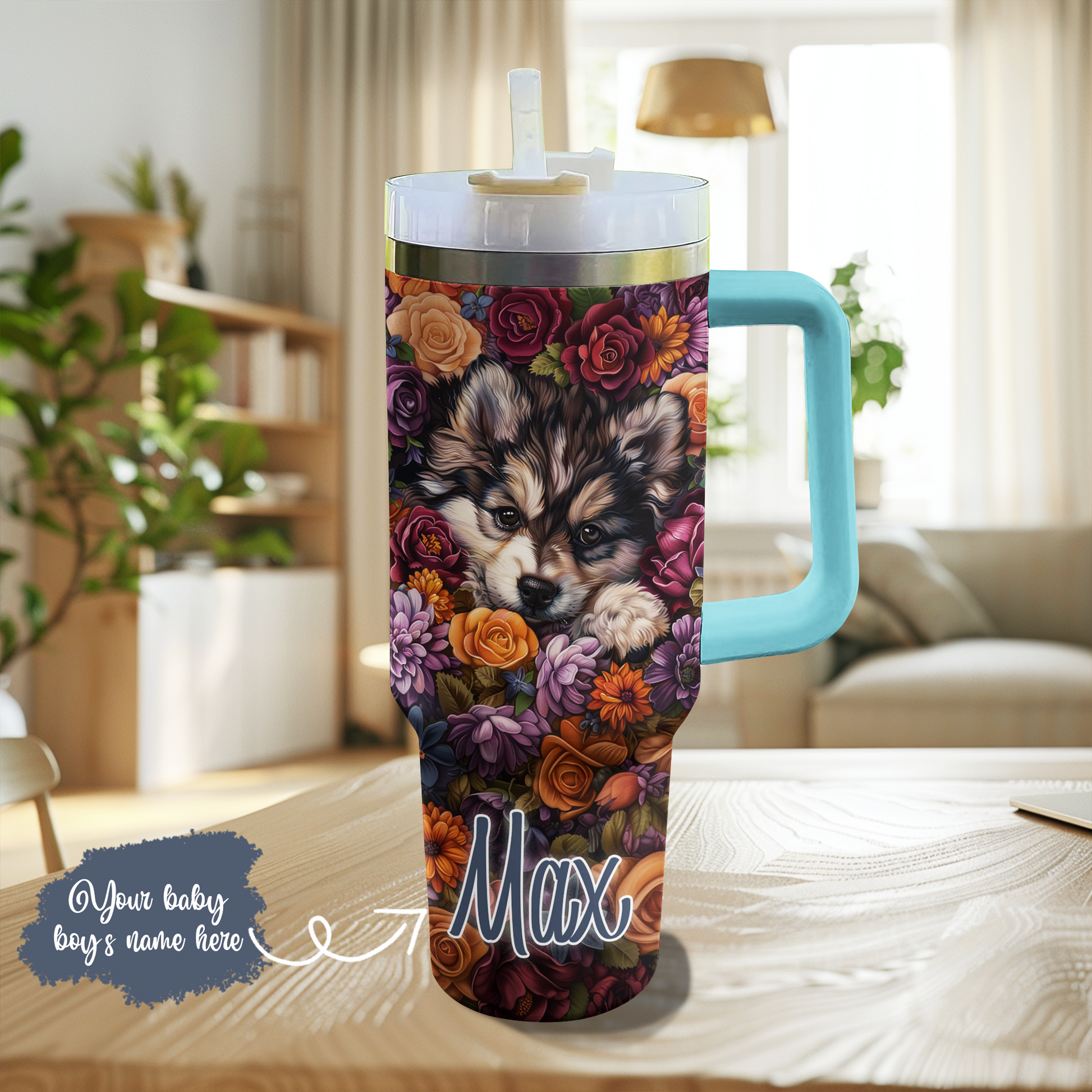 Shineful Personalized Tumbler Cute Floral Pomsky