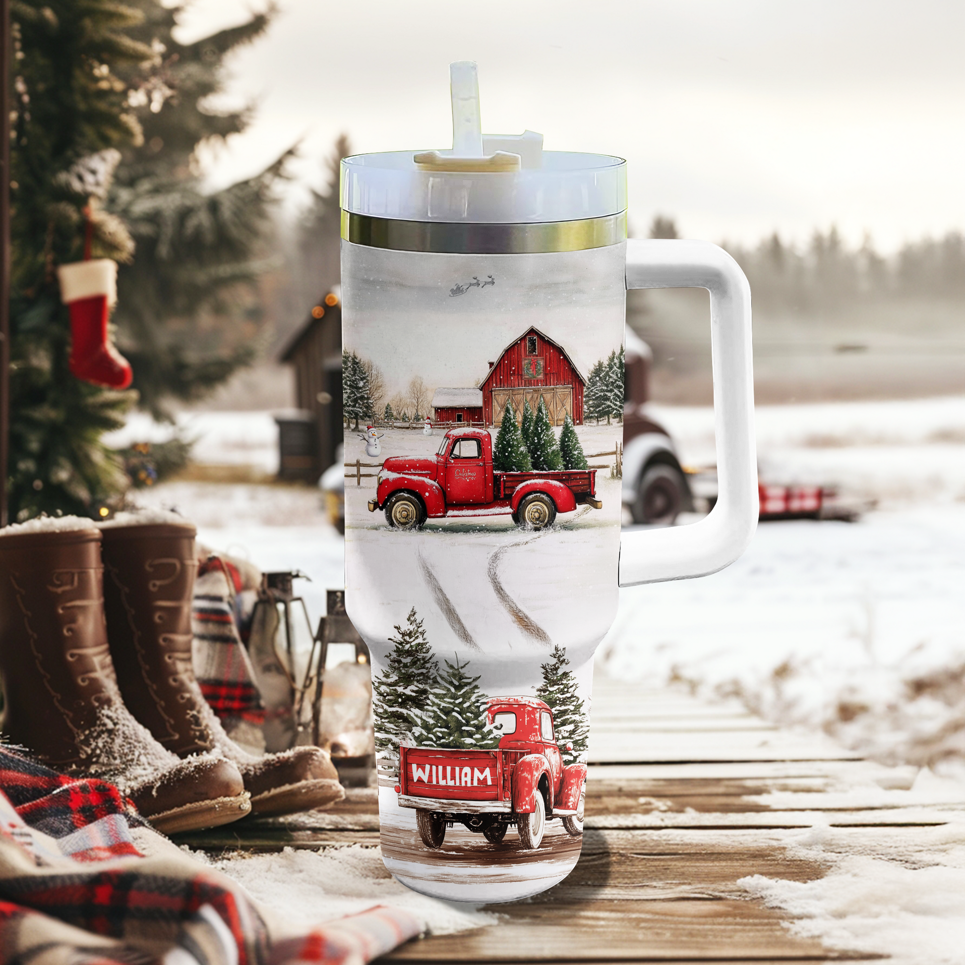 Shineful Personalized Tumbler Vintage Red Truck Christmas