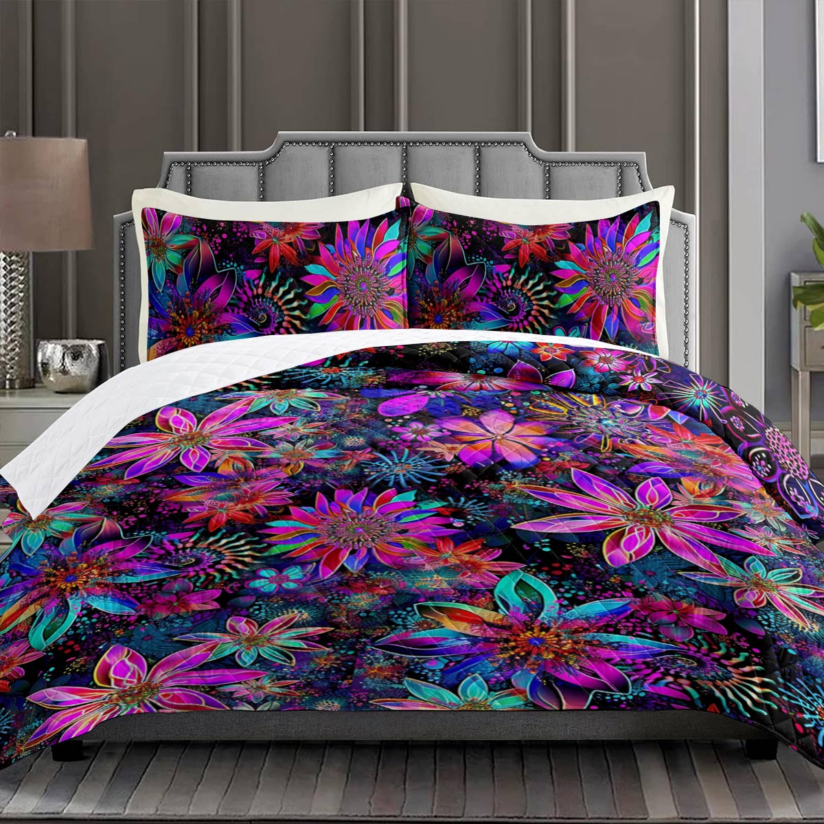 Transform your bedroom into a serene sanctuary with The Shineful Quilt Set. The rich, vibrant colors and unique artworks breathe new life into your space, while adding a touch of personality and timeless elegance. Crafted with attention to detail, each piece invites you to relax in style. This quilt set is more than just bedding—it’s a statement of comfort and sophistication. Let it elevate your bedroom and enhance every moment of rest