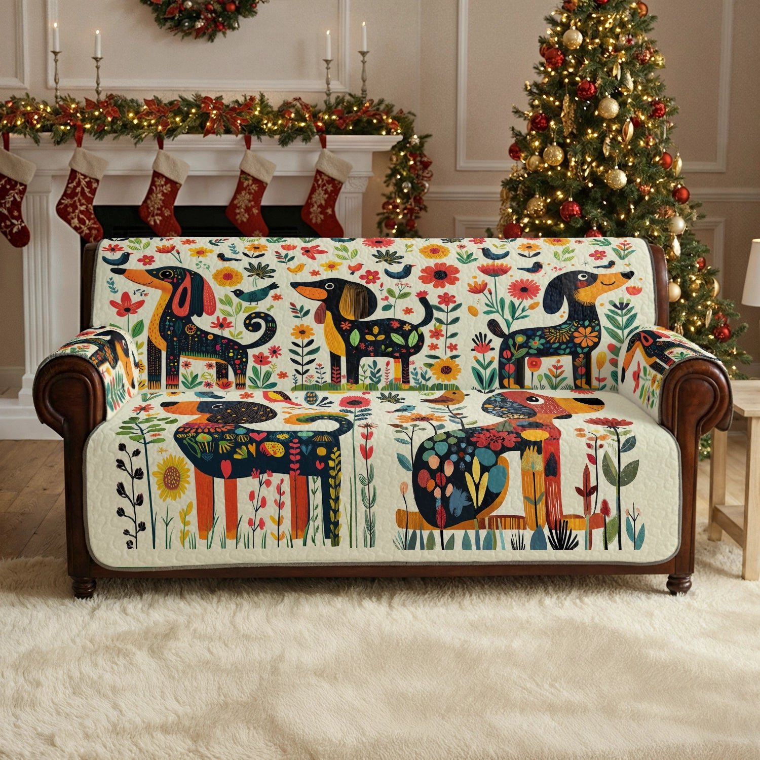 Shineful Sofa Cover Set Festive Dachshund Garden