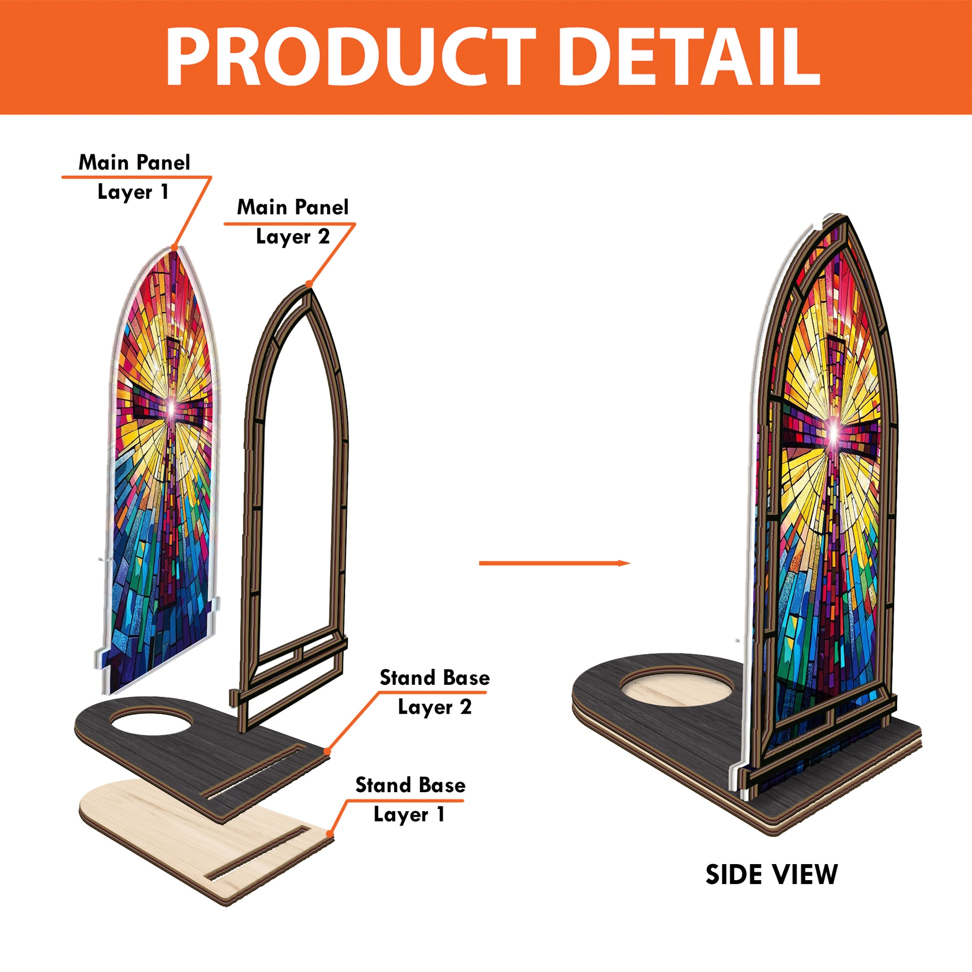 - Top layer: 3mm-thick plywood - Custom shape & print - Bottom layer: 2mm-thick acrylic - Custom shape & print