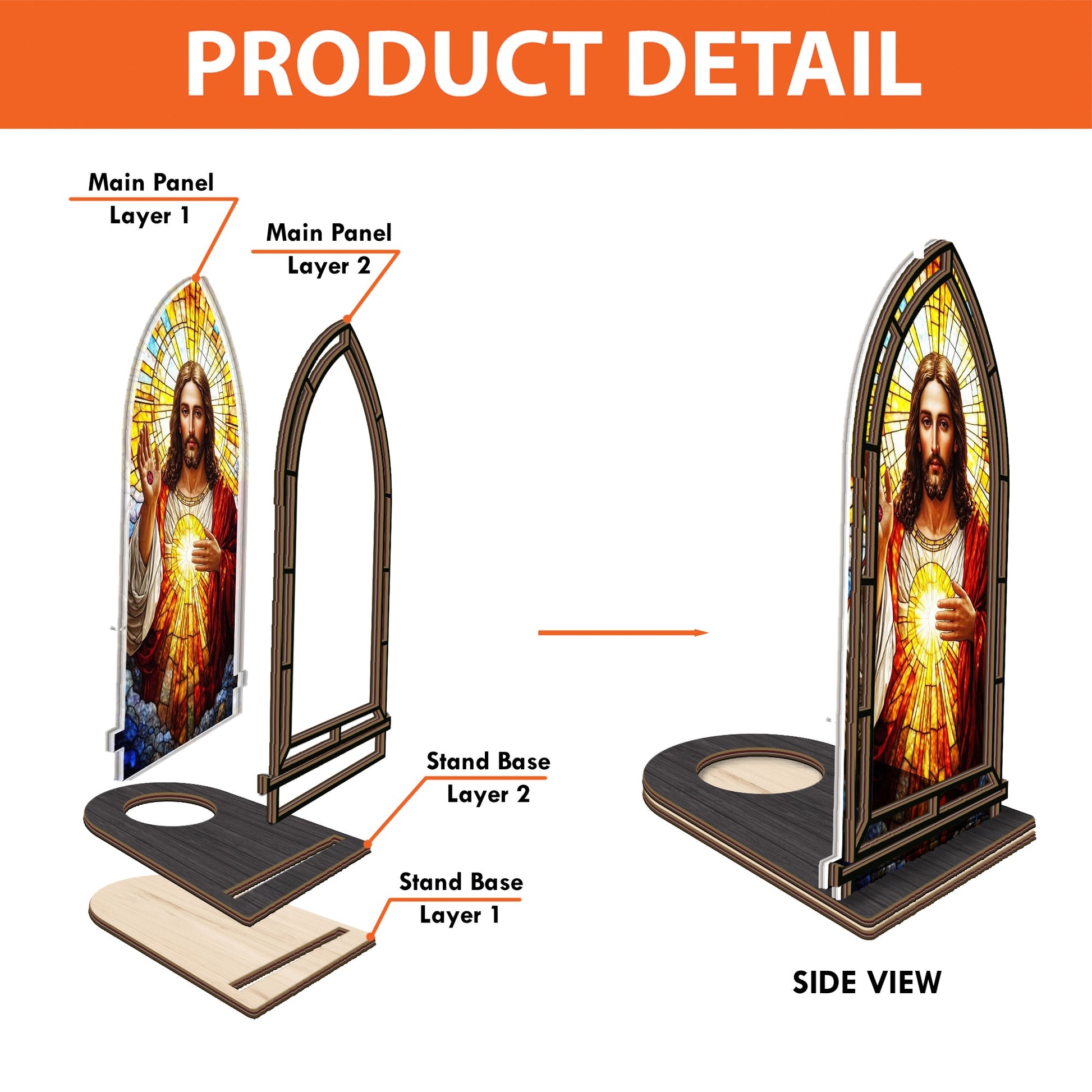 - Top layer: 3mm-thick plywood - Custom shape & print - Bottom layer: 2mm-thick acrylic - Custom shape & print