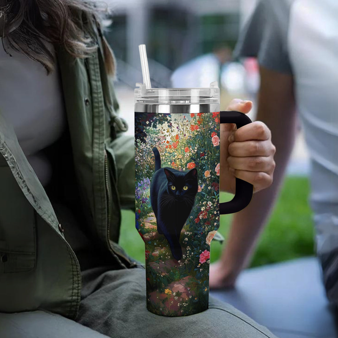 Shineful Tumbler Black Cat In English Garden