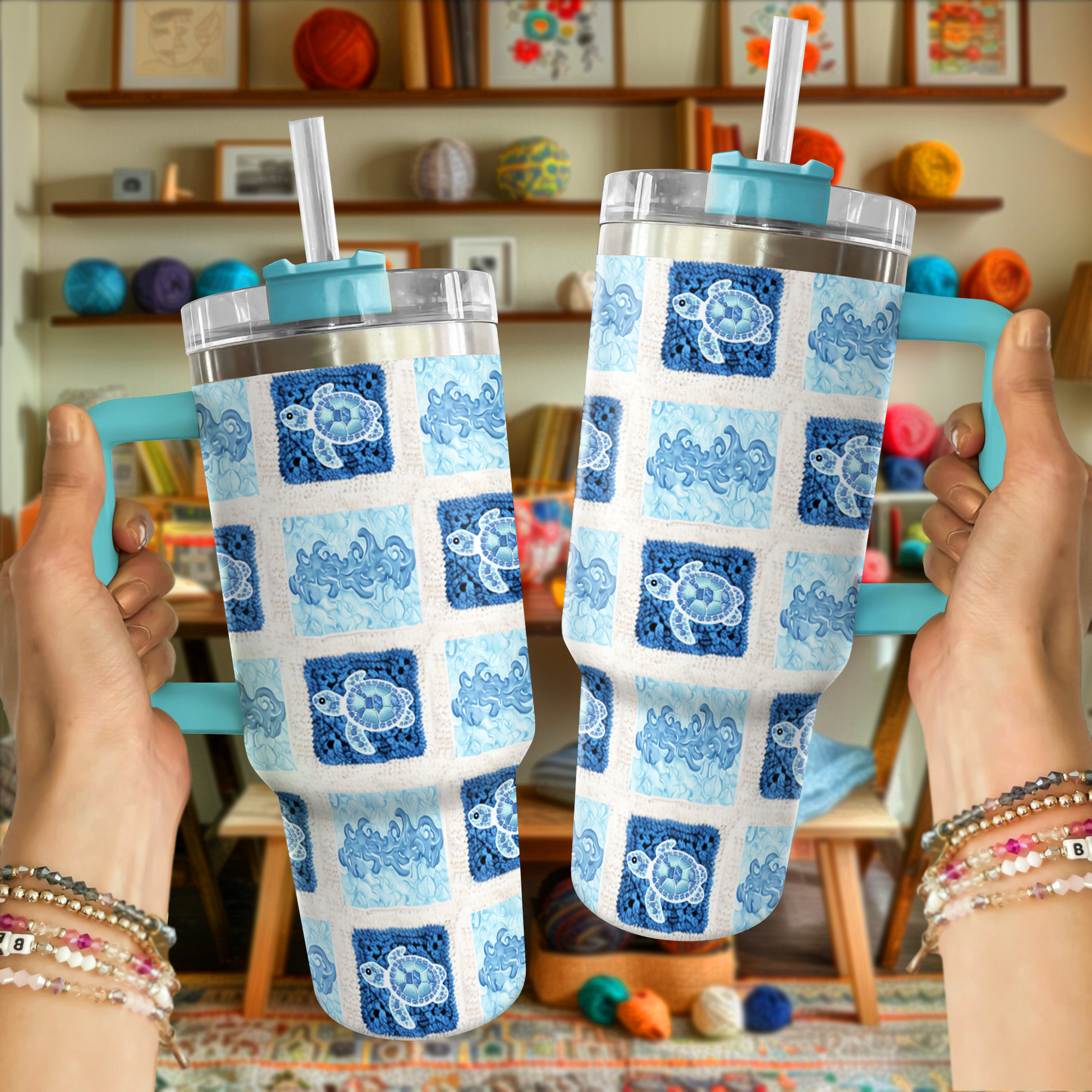 Shineful Tumbler Blue Waves and Turtles