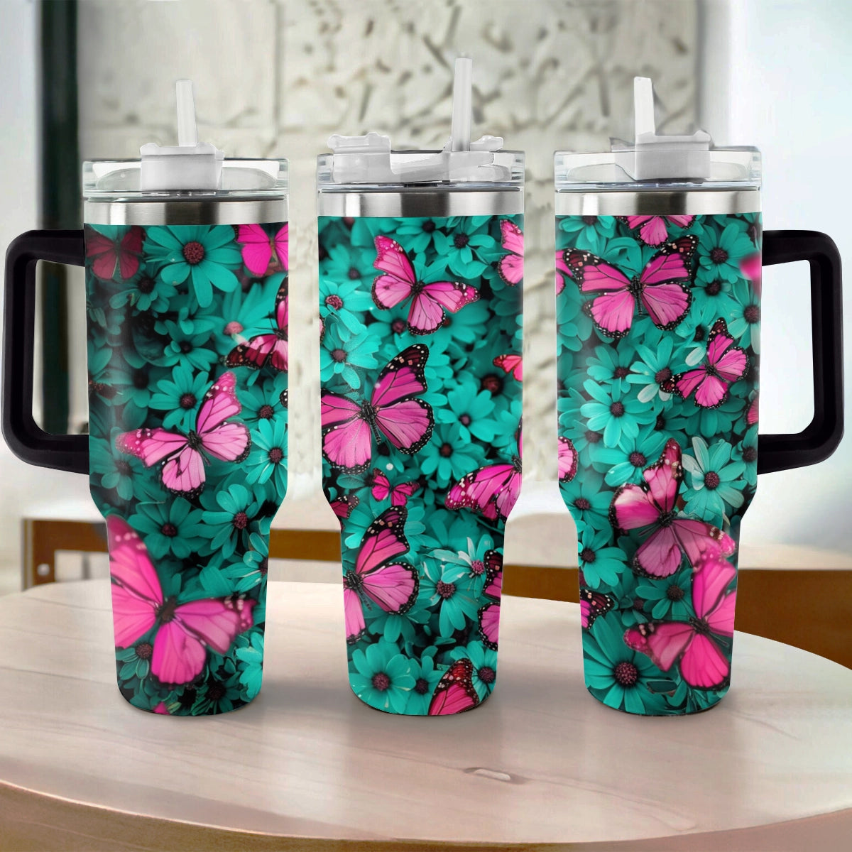 Shineful Tumbler Butterfly Turquoise Blooms