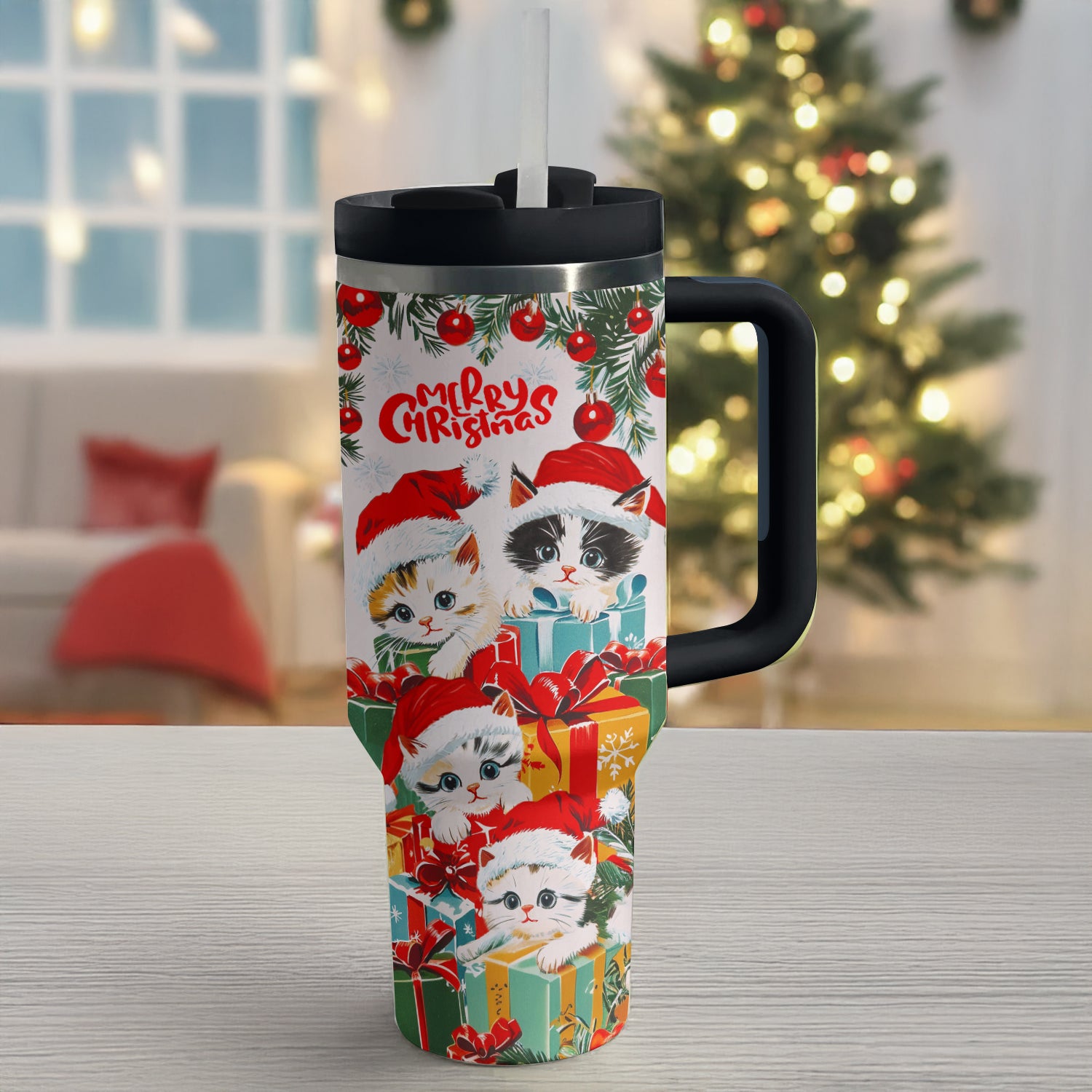 Shineful Tumbler Cute Christmas Kitten