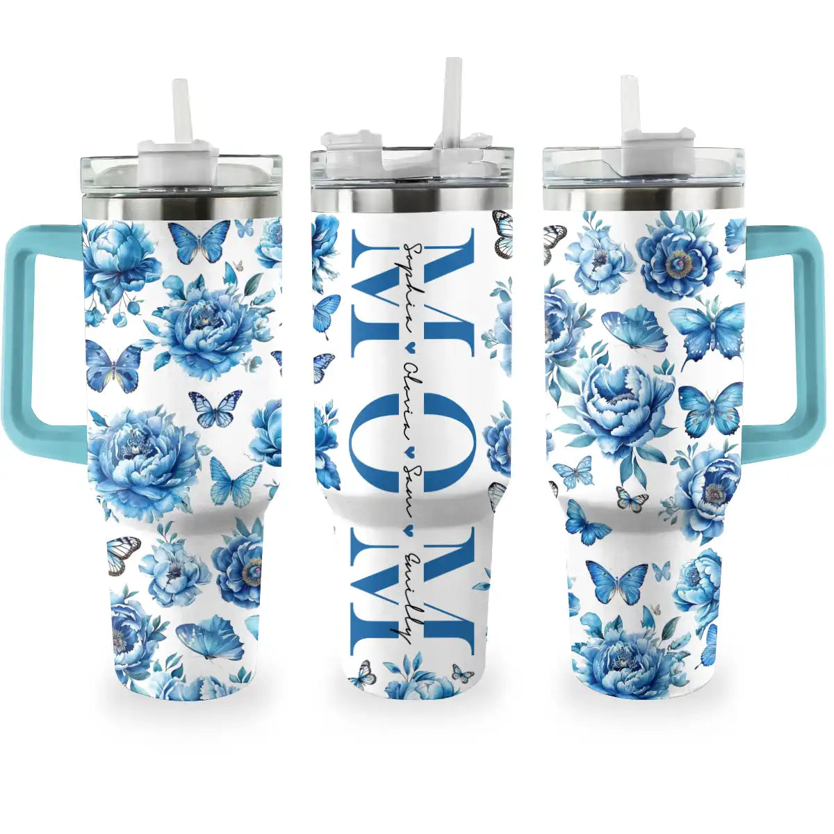 Shineful Tumbler Personalized Mom Blue Peonies and Butterfly