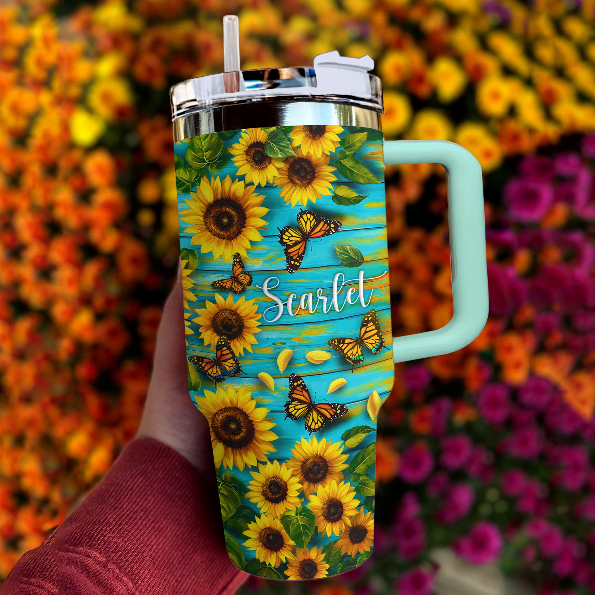 Shineful Tumbler Personalized Sunflower With Butterfly