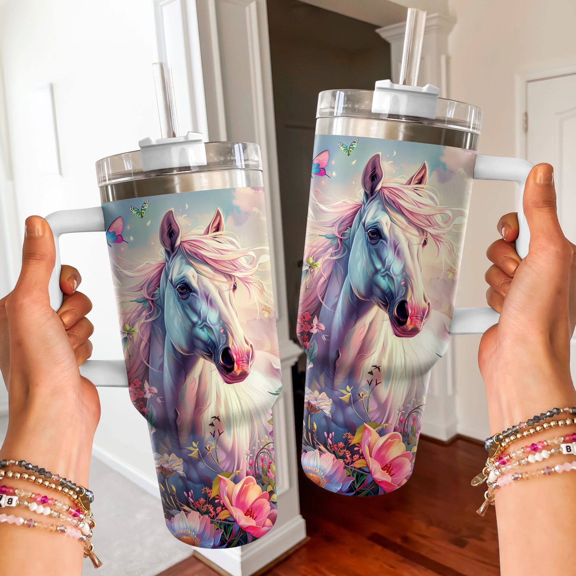 Shineful Tumbler Pink Floral Horse