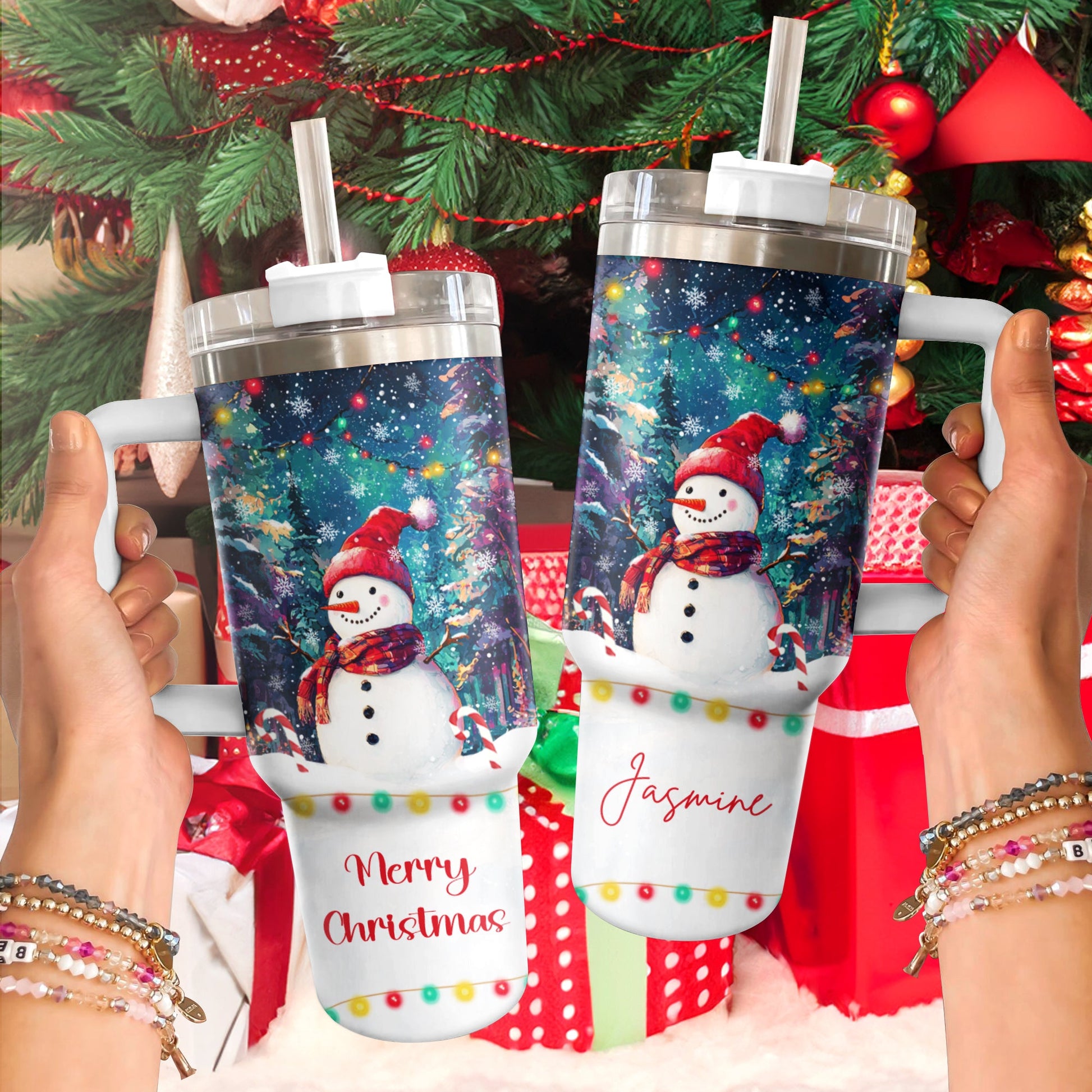 Shineful Tumbler Personalized Snowman Under Christmas Light