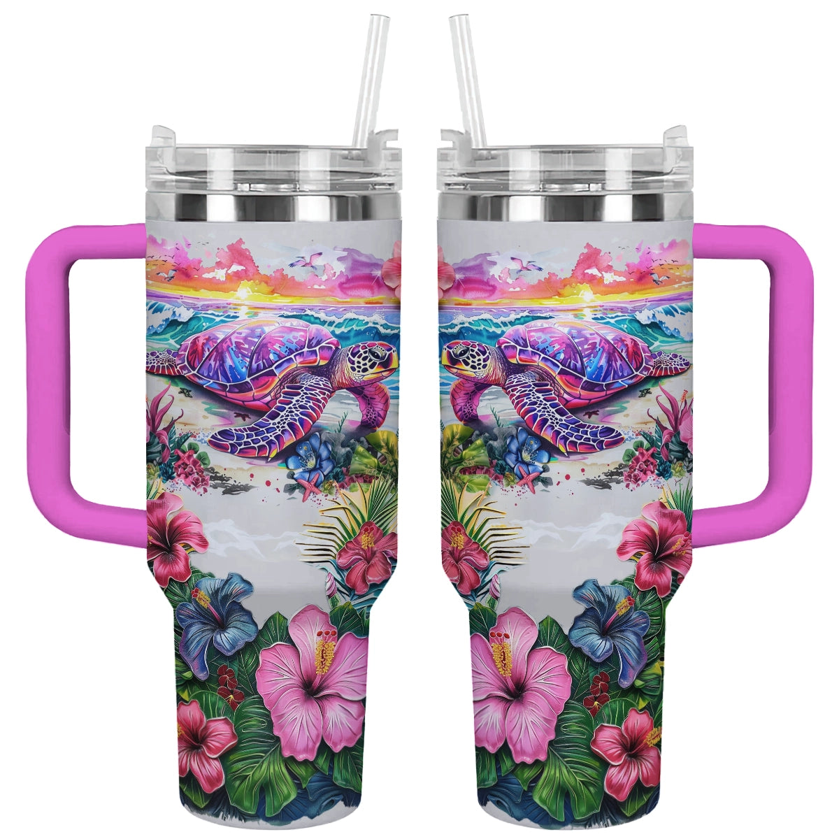 Shineful Tumbler Sunset Hibiscus Sanctuary Turtle