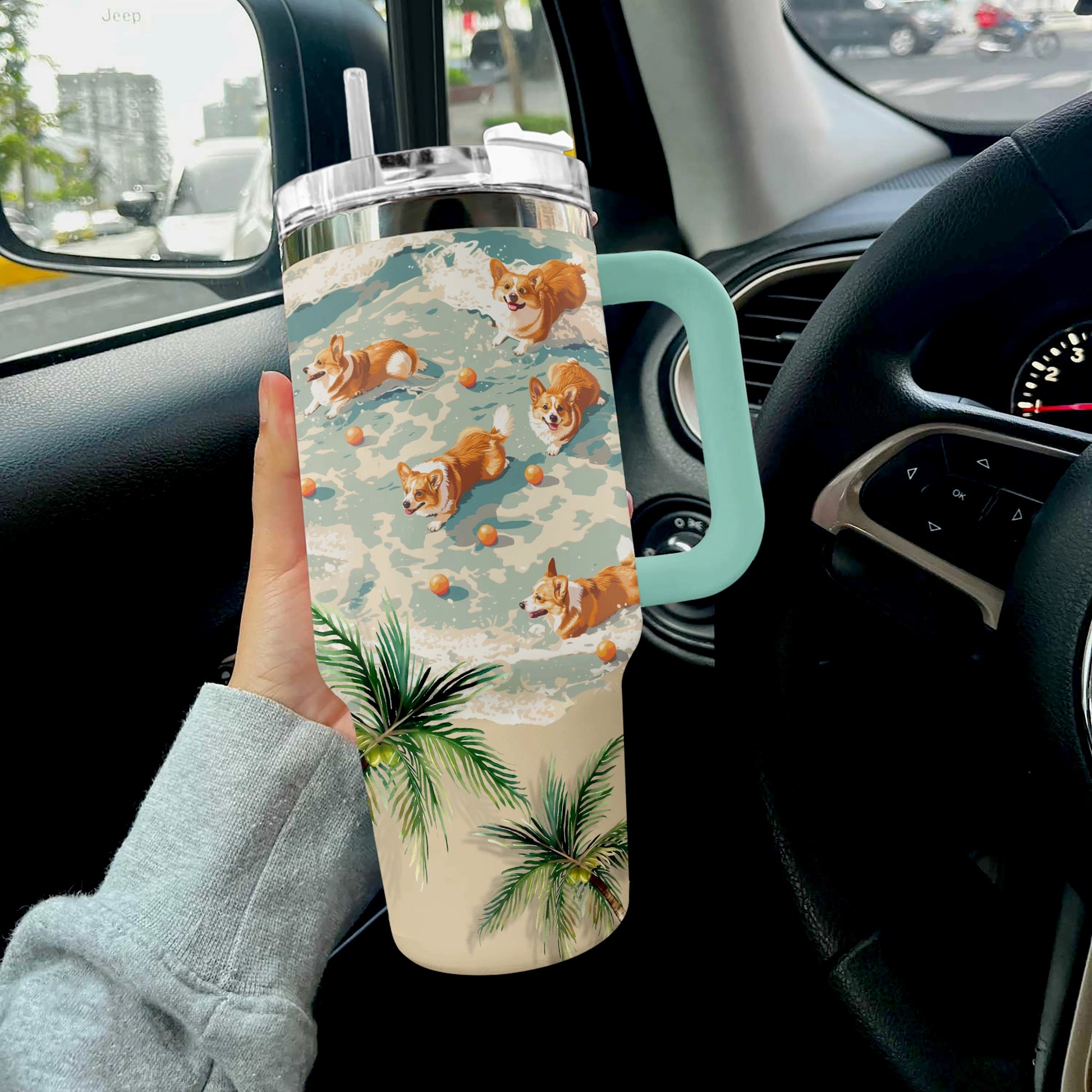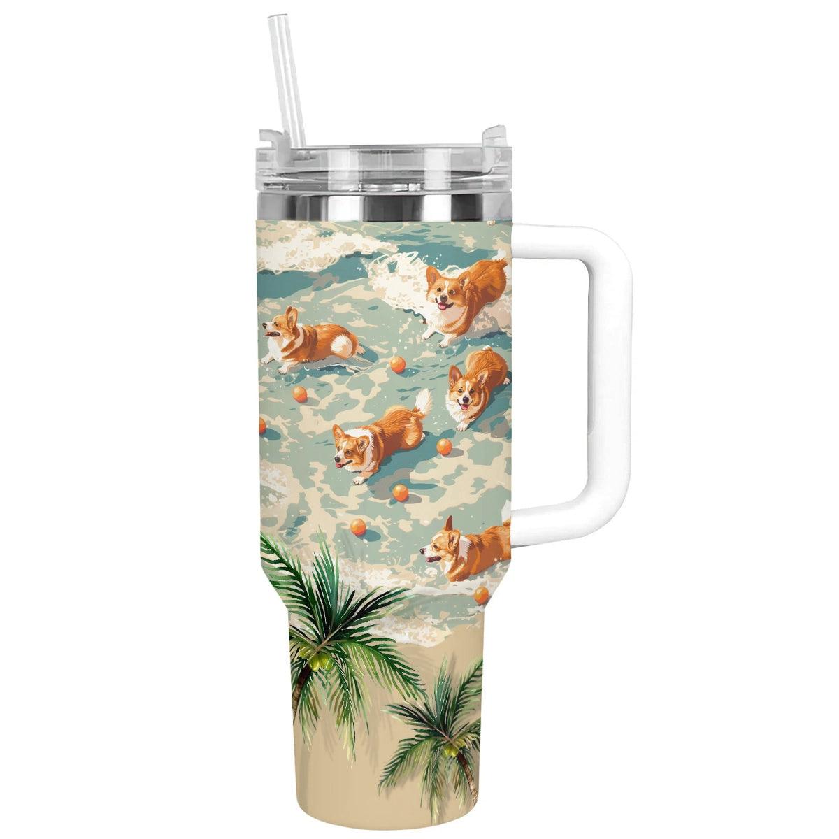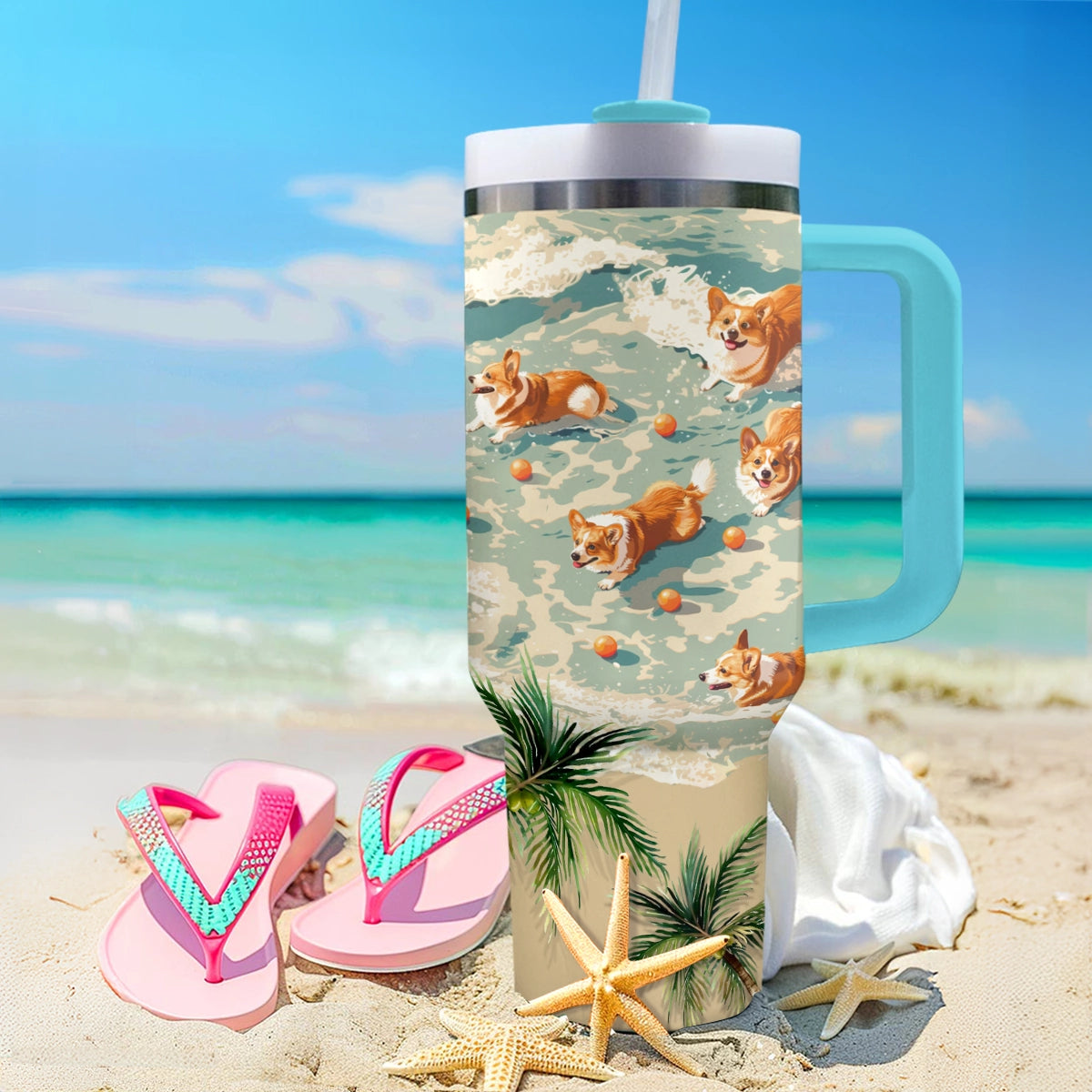 Shineful Tumbler Tropical Beach Corgi