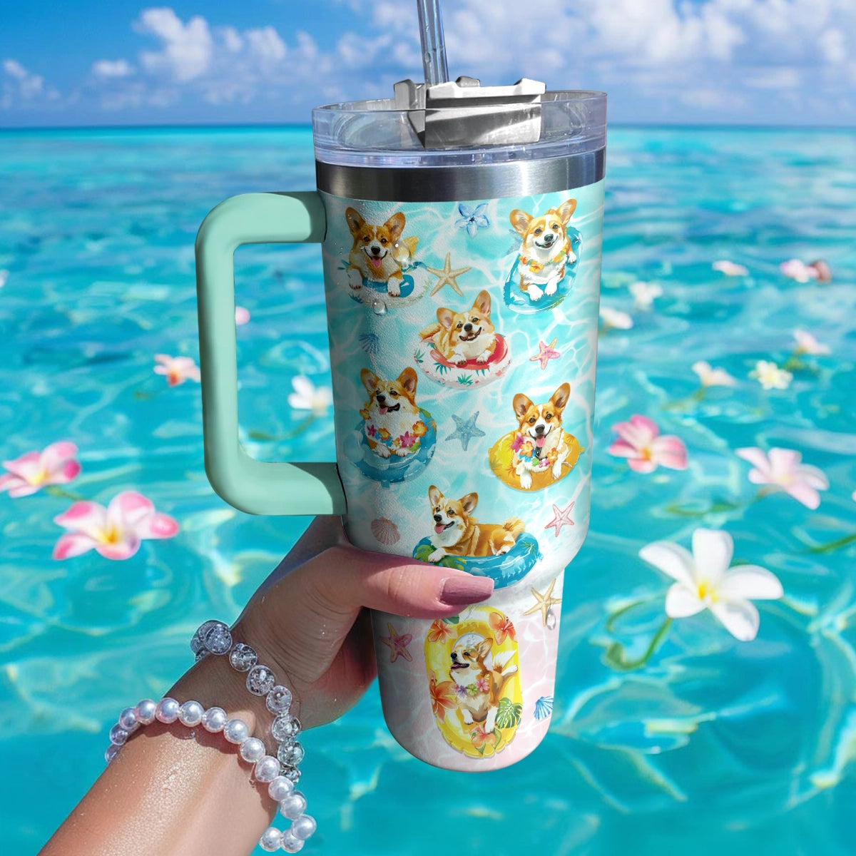 Shineful Tumbler Tropical Corgi Beach