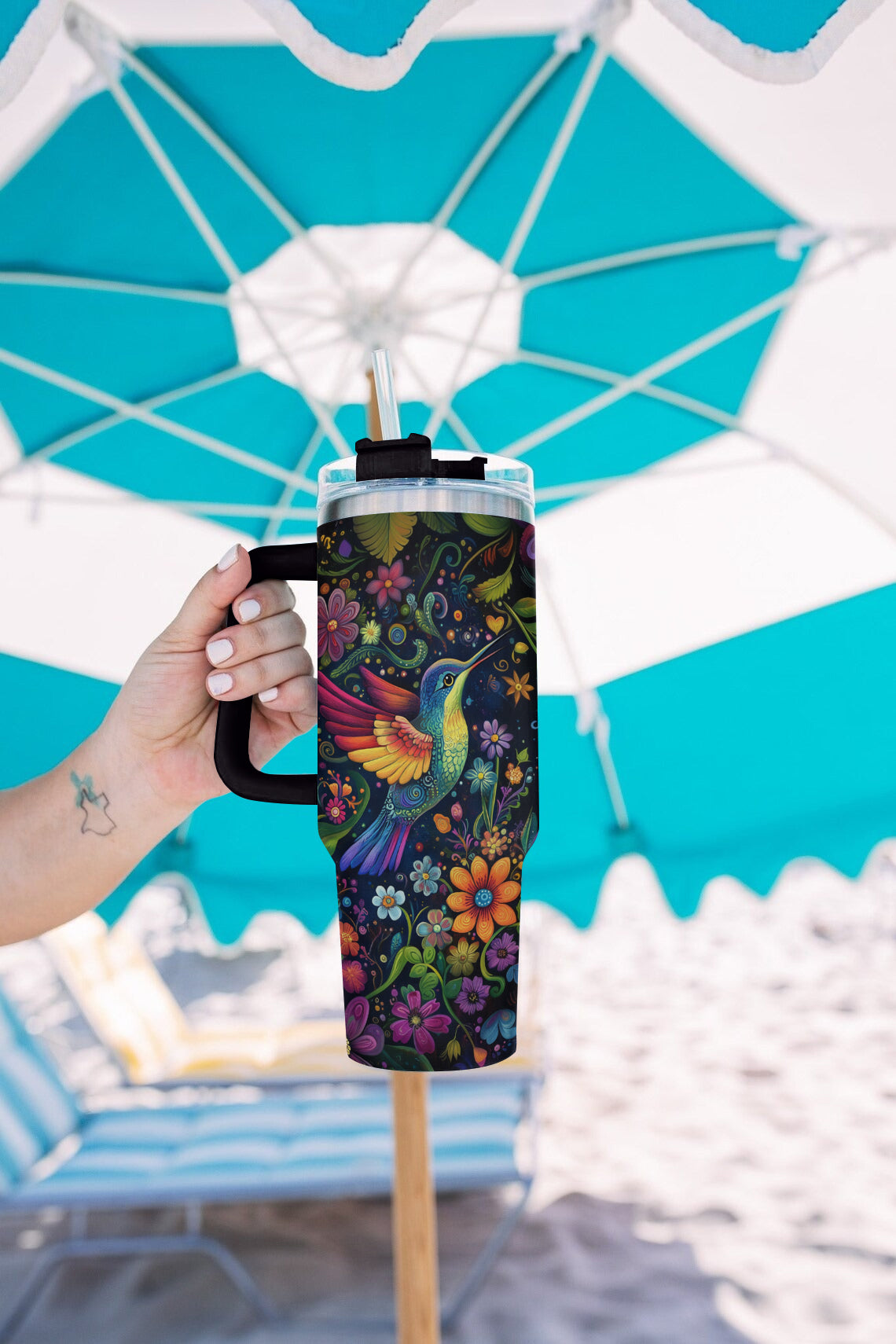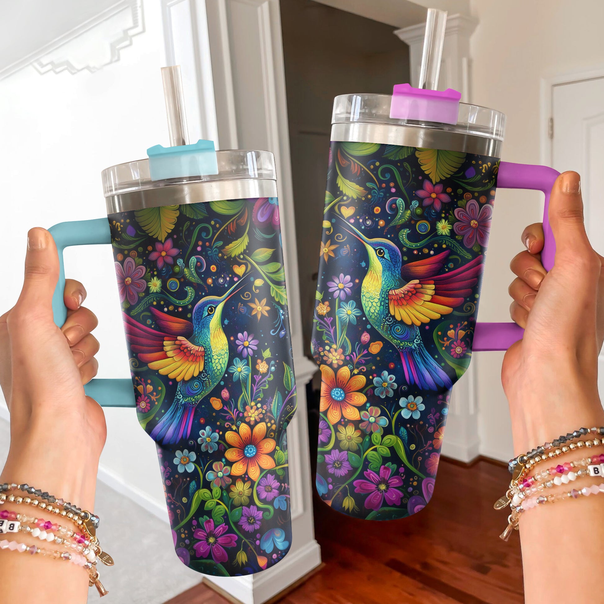 Shineful Tumbler Vibrant Floral Hummingbird
