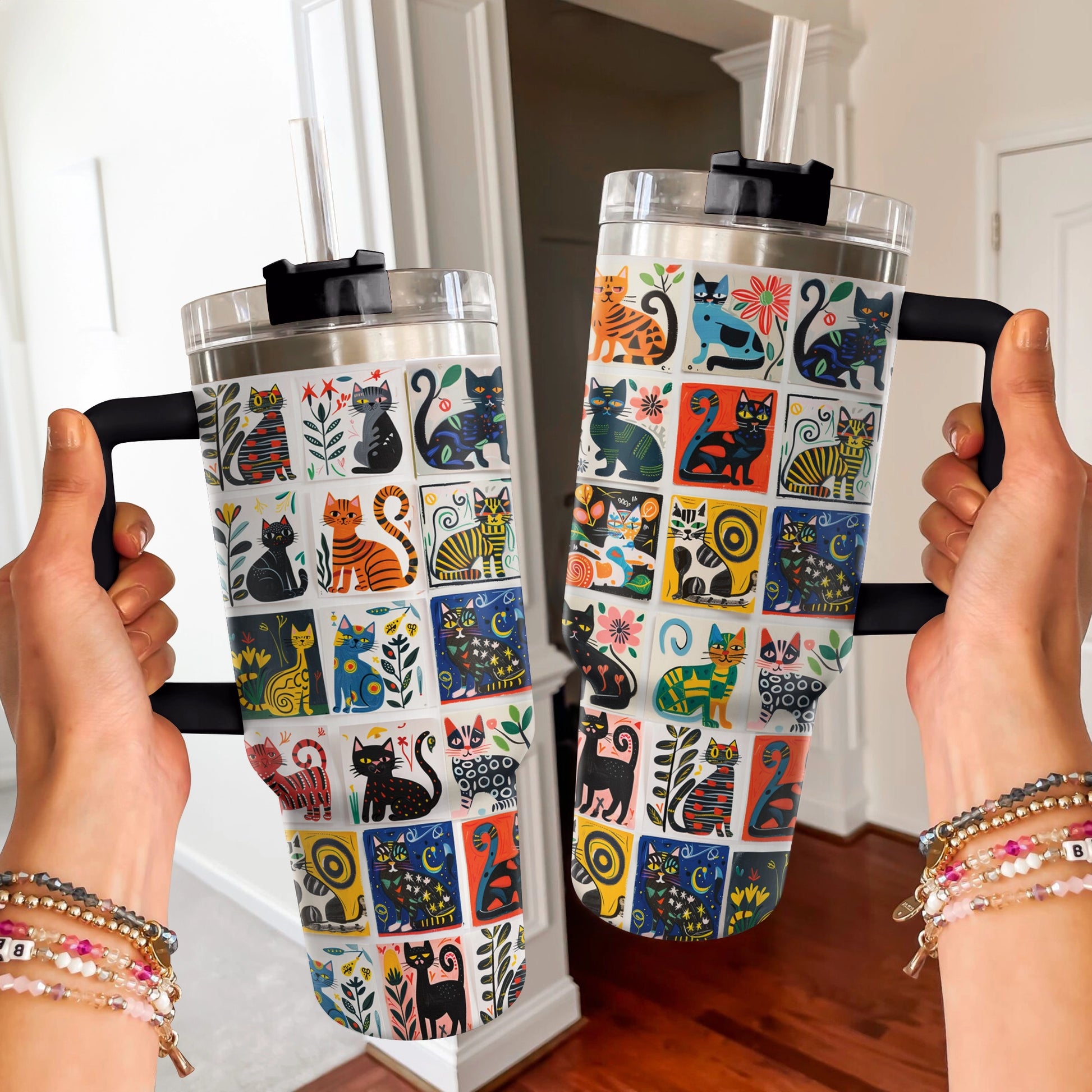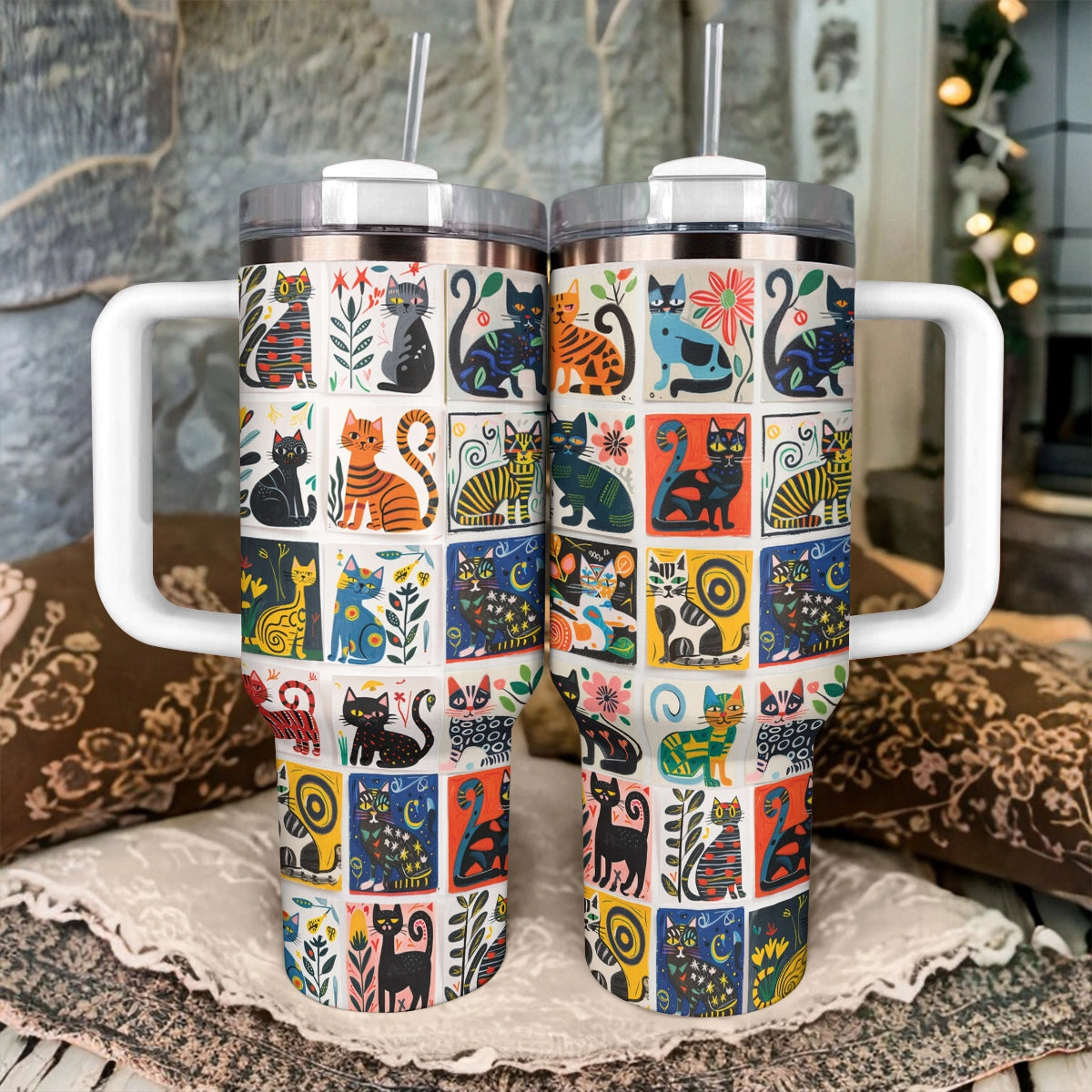 Shineful Tumbler Whimsical Cat Collage
