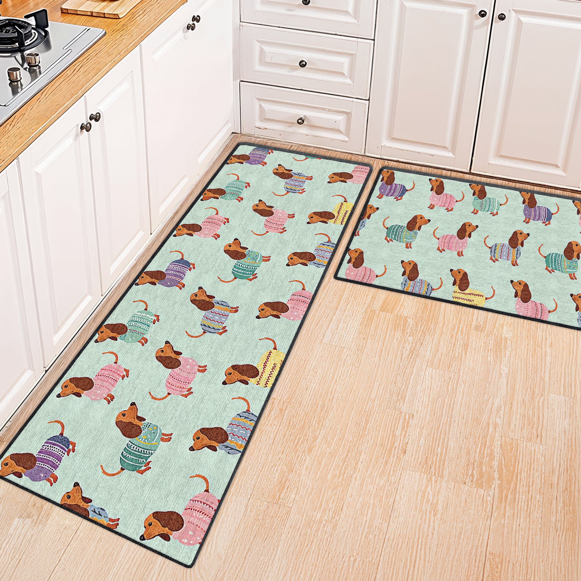 Shineful Ultra-Thin Non Skid Floor Mat, Kitchen Rugs Colorful Dachshunds
